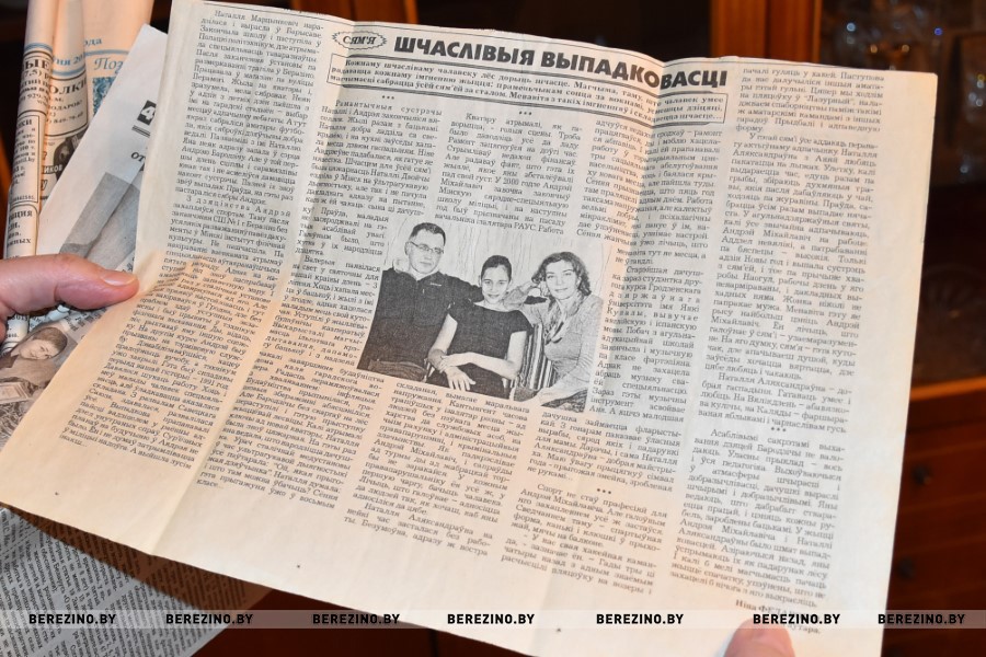 – Это районка писала о моих родных и любимых, – улыбнулась Нина Андреевна. – Вот это в прошлом году награждали мою доченьку – Ирину. Она – педагог по образованию, теперь – заместитель директора по воспитательной работе в СШ №2 города, была удостоена награды «Отличник образования». А вот это –  статья о семье моего сына Андрюши, он окончил милицейскую школу, 23 года отслужил в Березинском РОВД, был начальником ИВС (изолятора временного содержания) и в звании майора вышел в отставку. Для меня это не просто вырезки из газет, это память, дорогая сердцу…