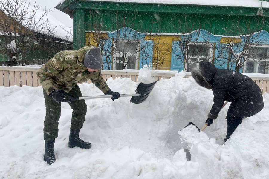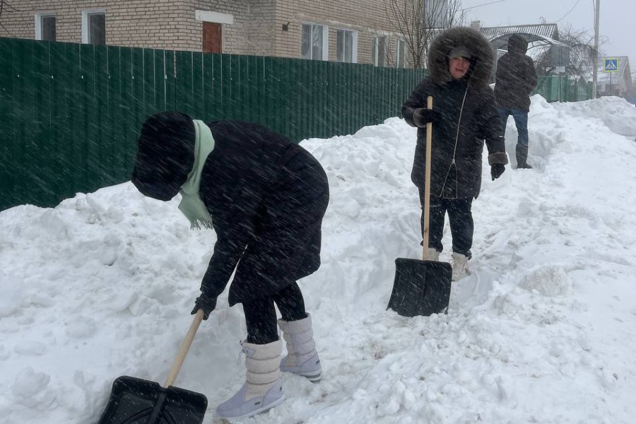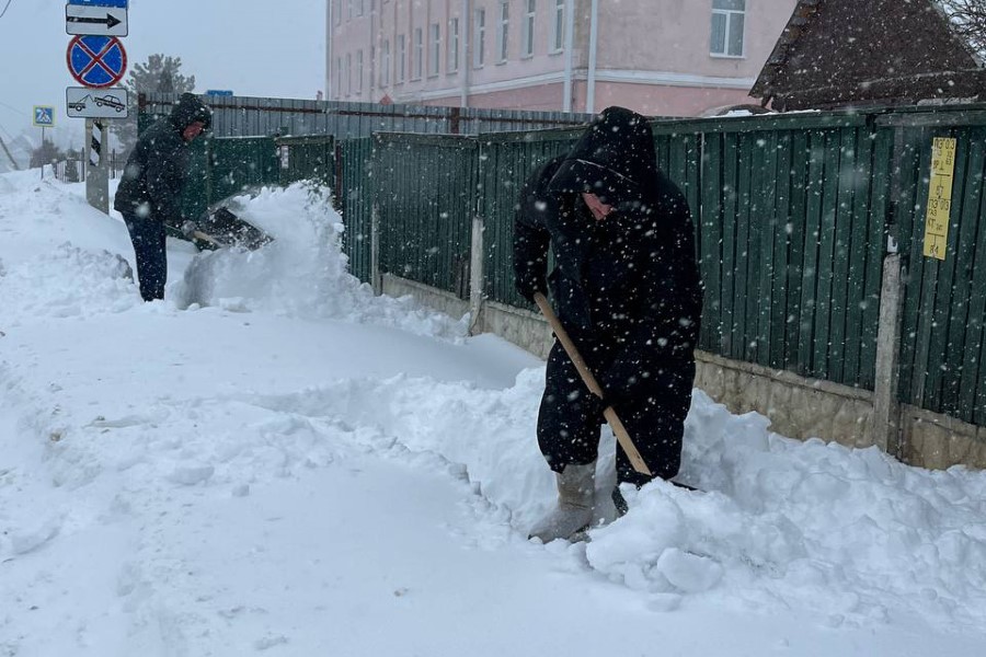 Вместе расчищали снег около городской средней школы №2, почистили тротуарные дорожки. Все – для безопасности детей.