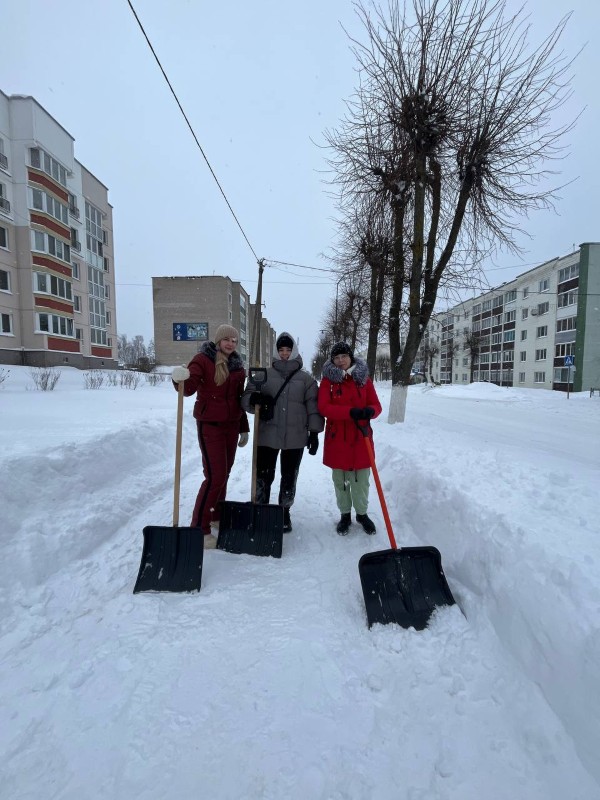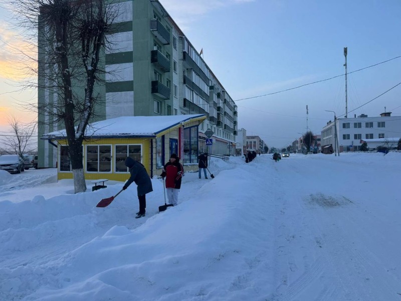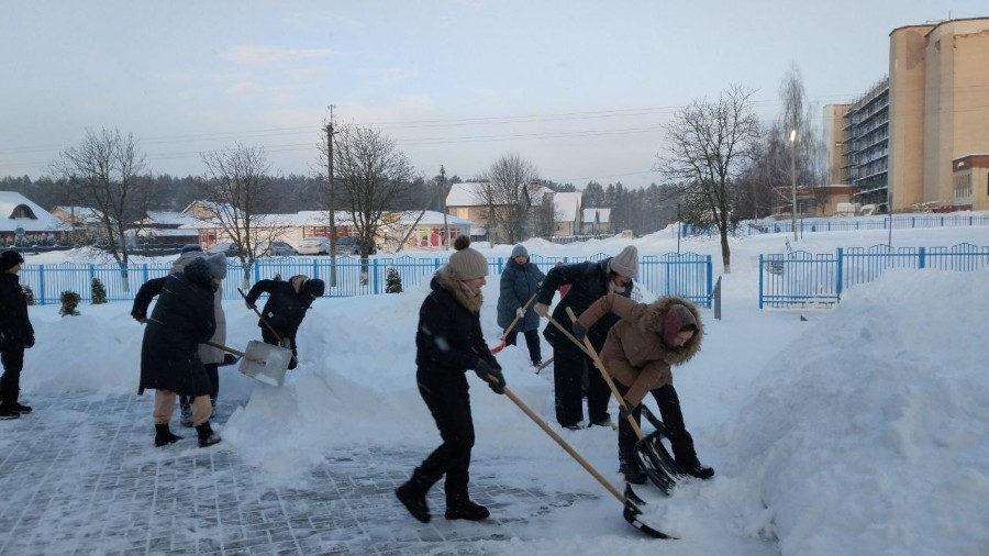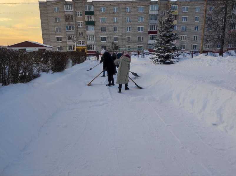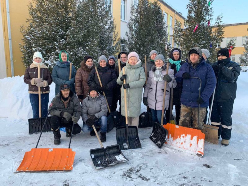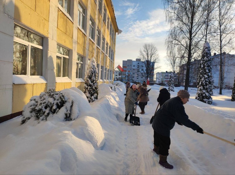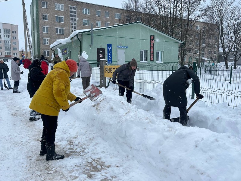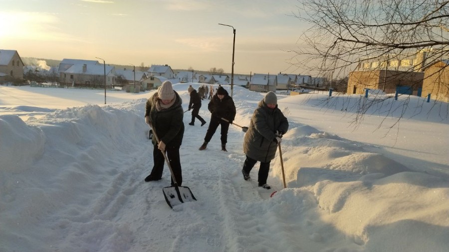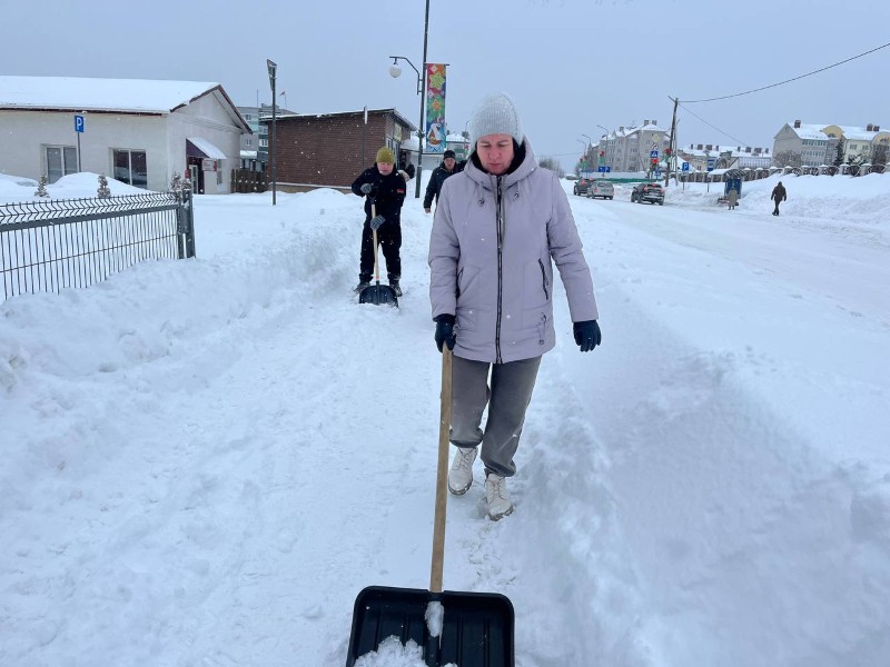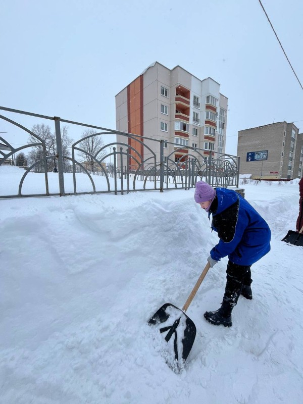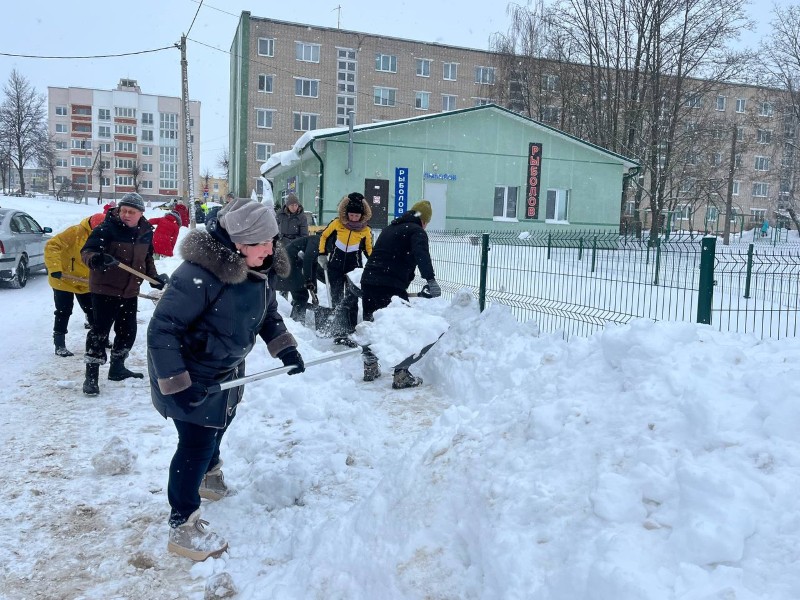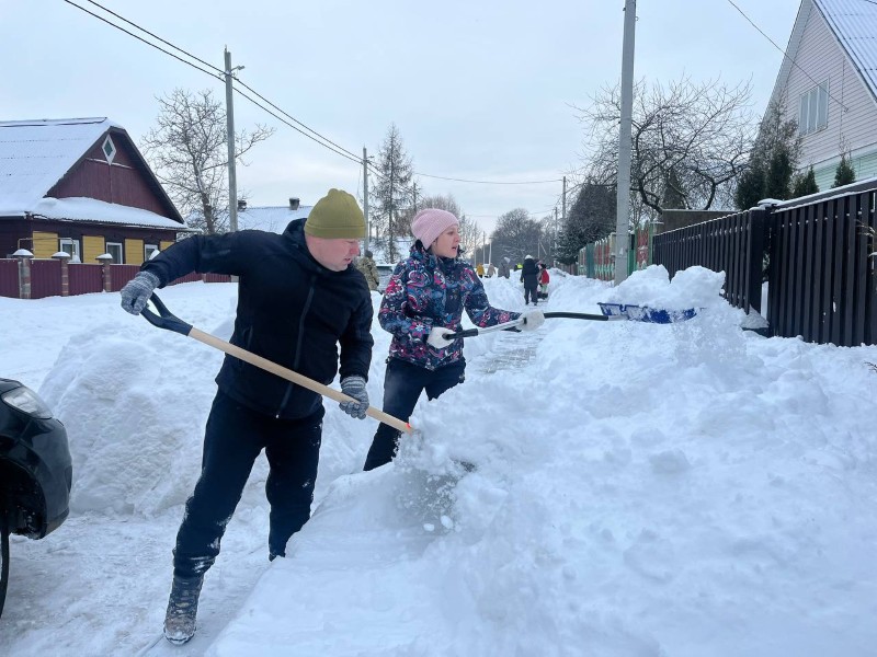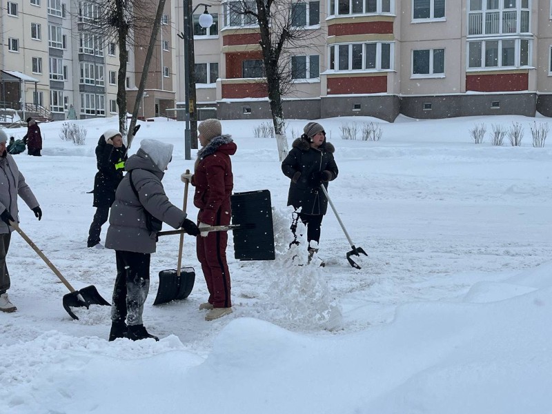 Чтобы помочь коммунальным службам, с самого утра к расчистке снега присоединились коллективы организаций и жители района.