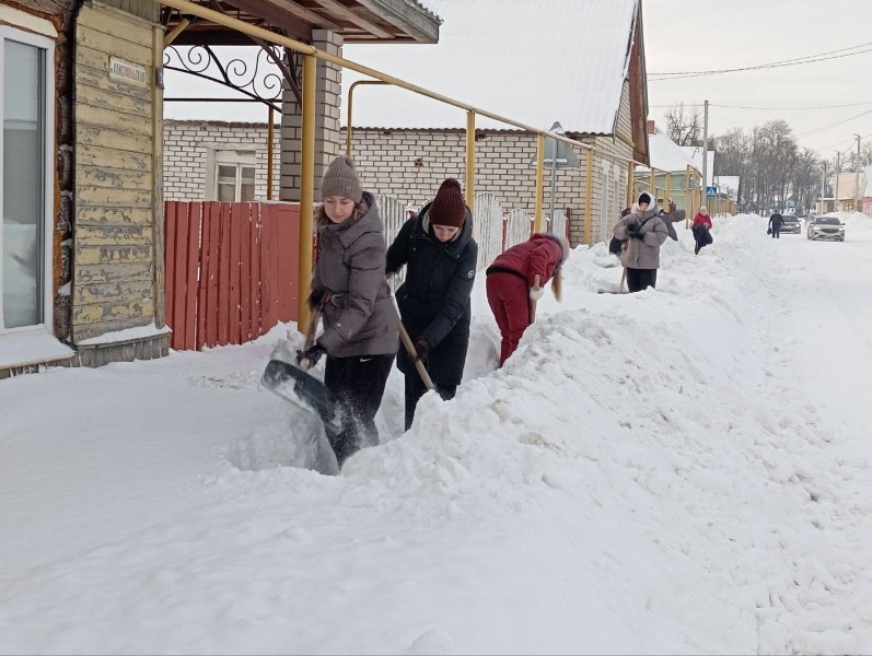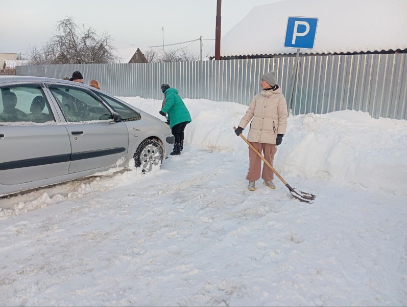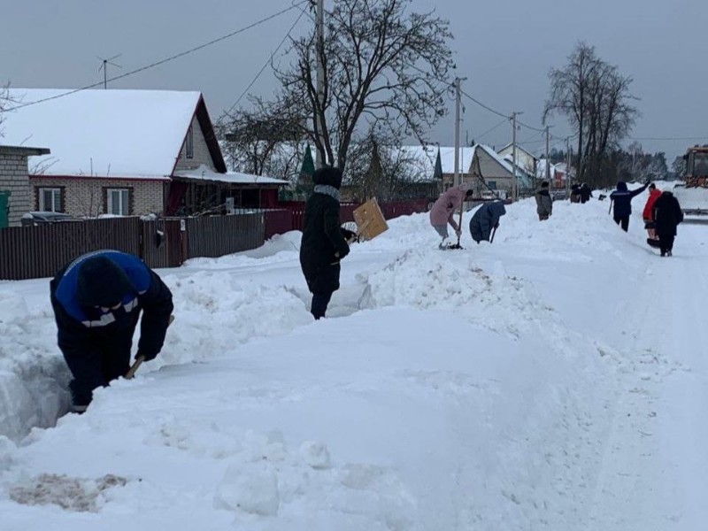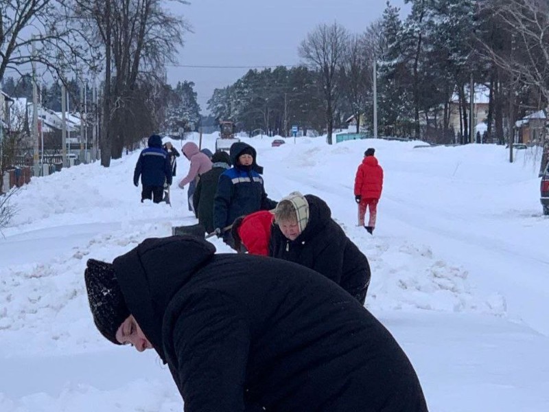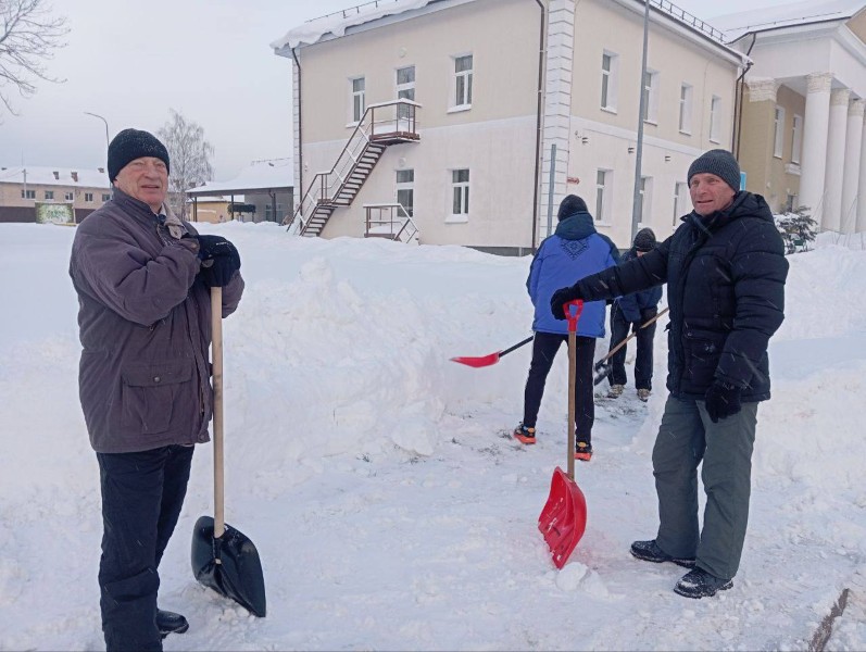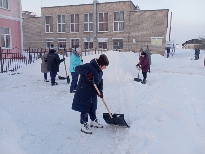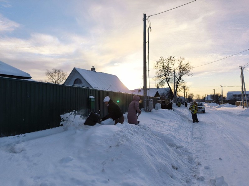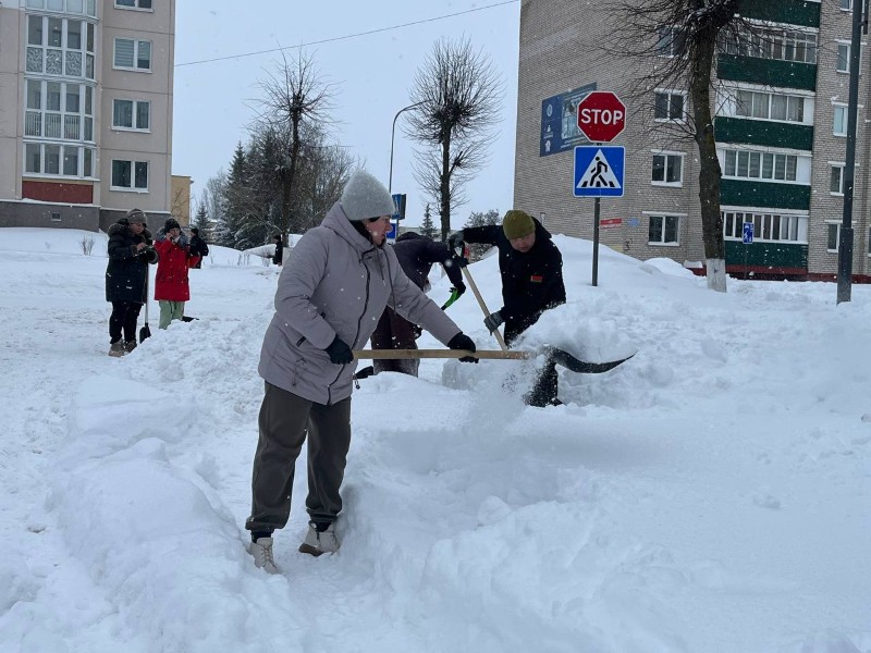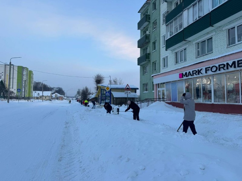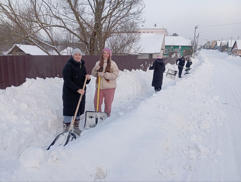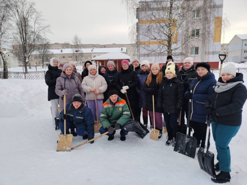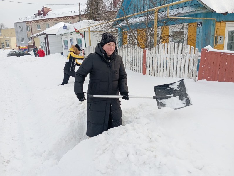 Чтобы помочь коммунальным службам, с самого утра к расчистке снега присоединились коллективы организаций и жители района.
