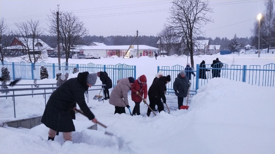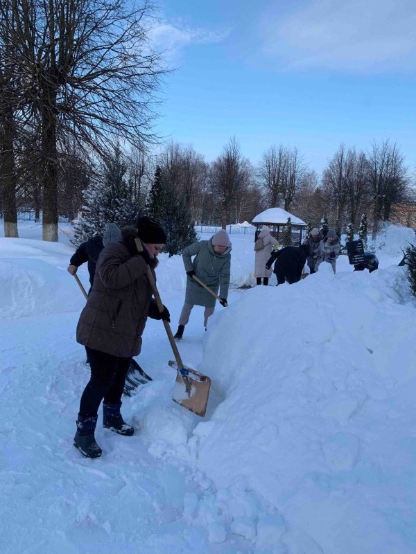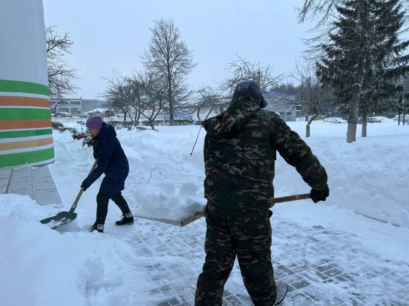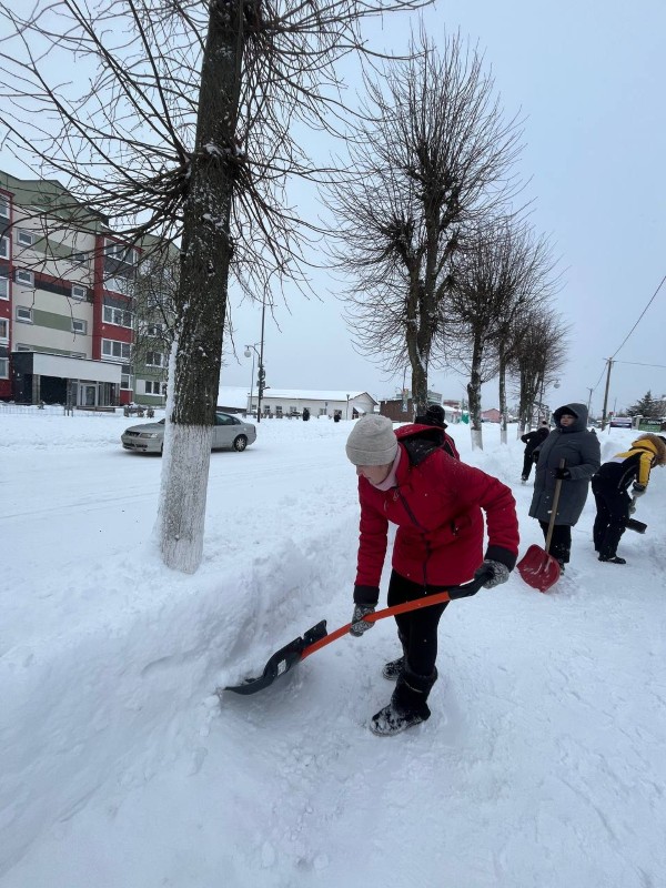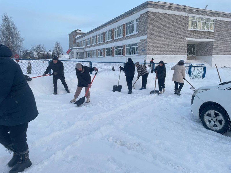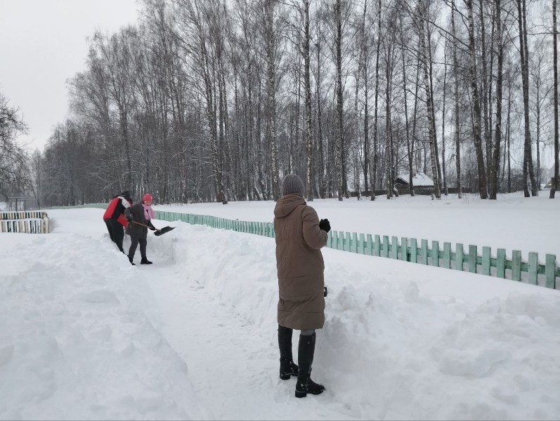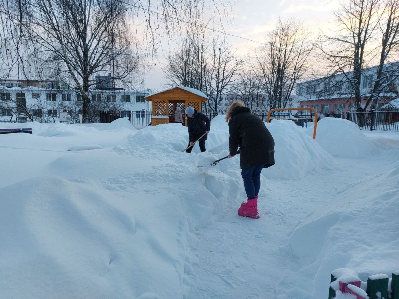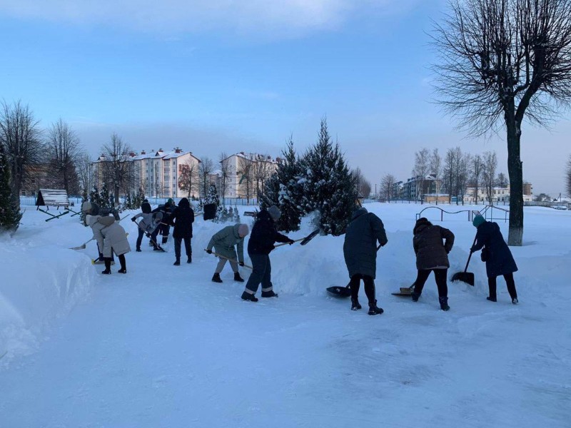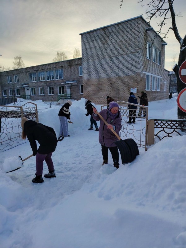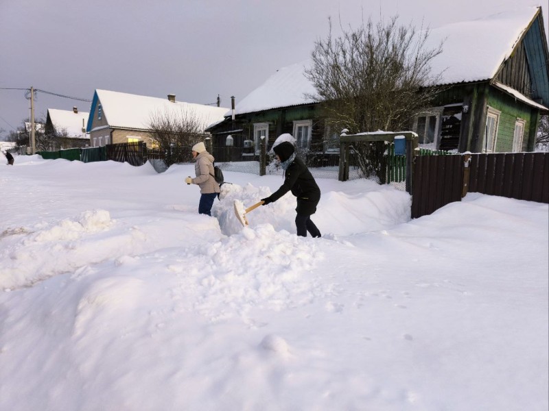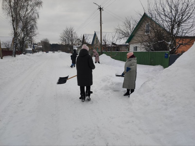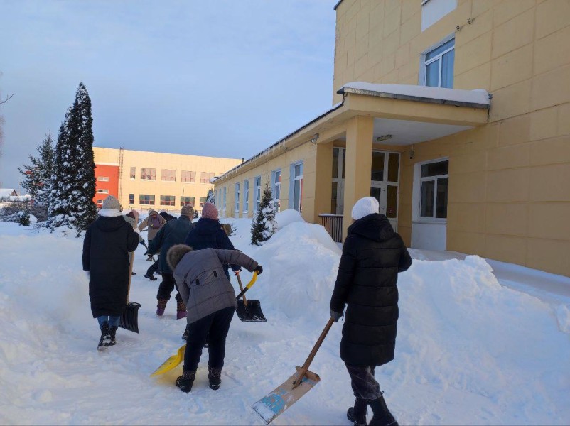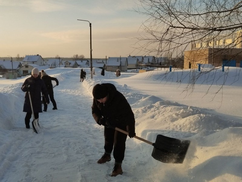 Чтобы помочь коммунальным службам, с самого утра к расчистке снега присоединились коллективы организаций и жители района.