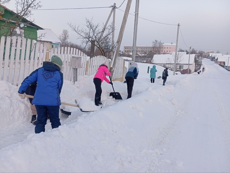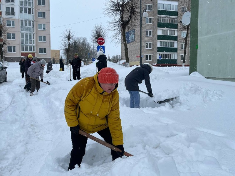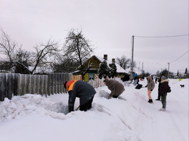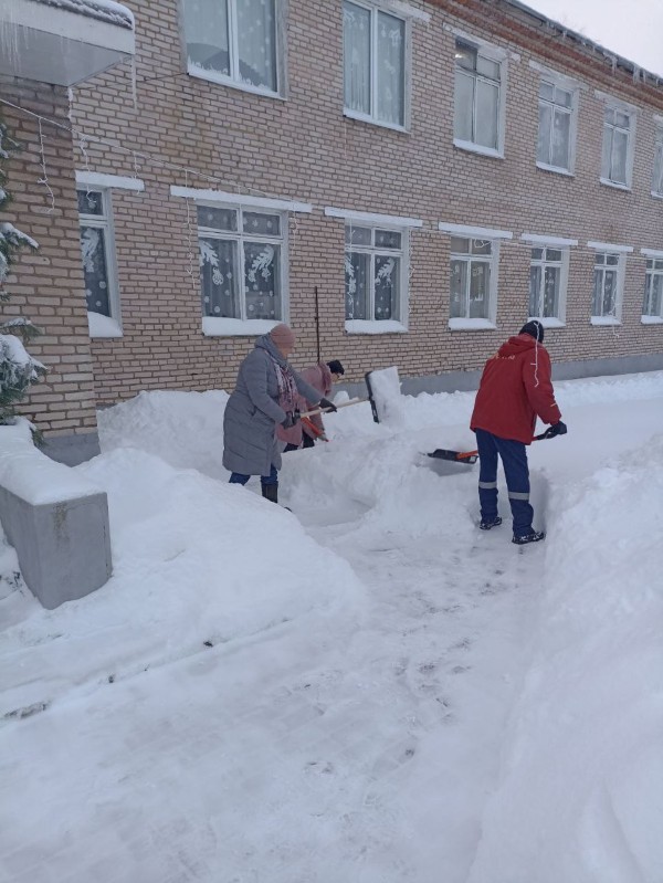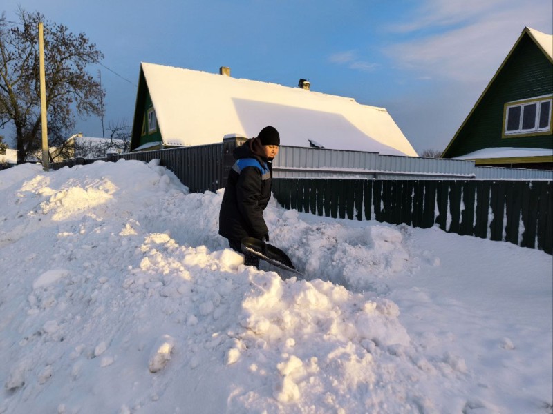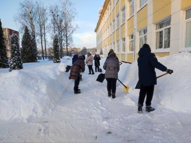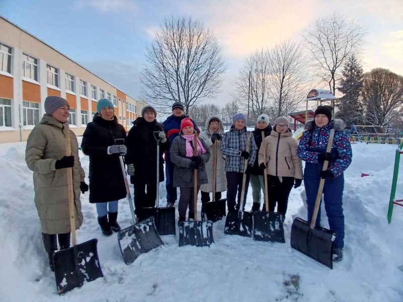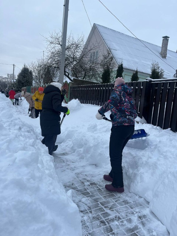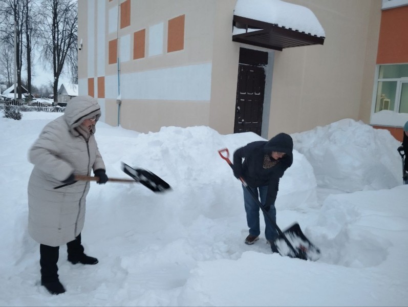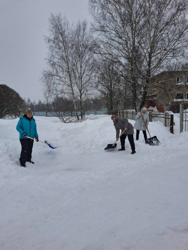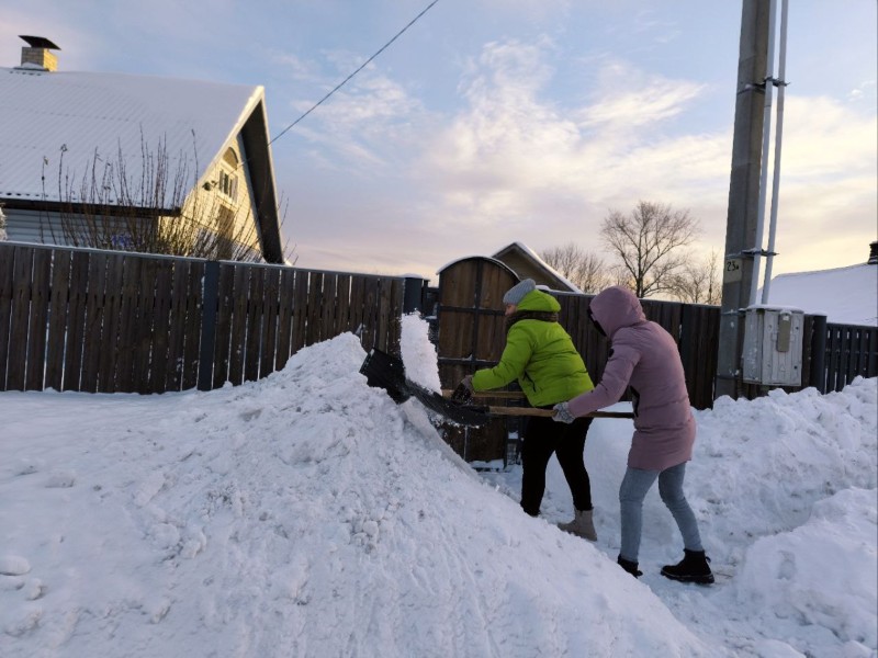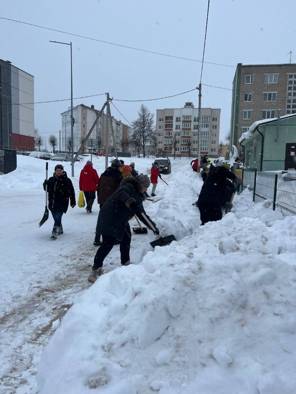 Чтобы помочь коммунальным службам, с самого утра к расчистке снега присоединились коллективы организаций и жители района.