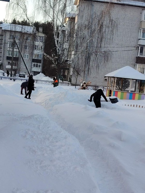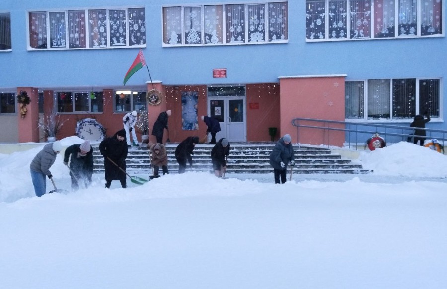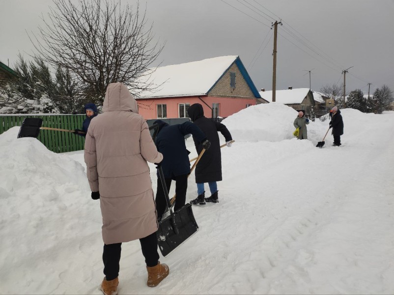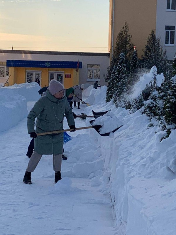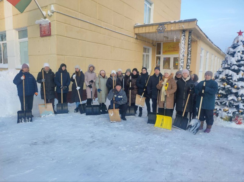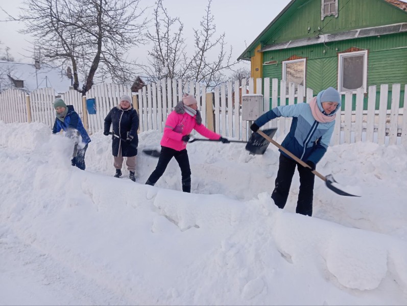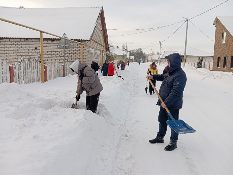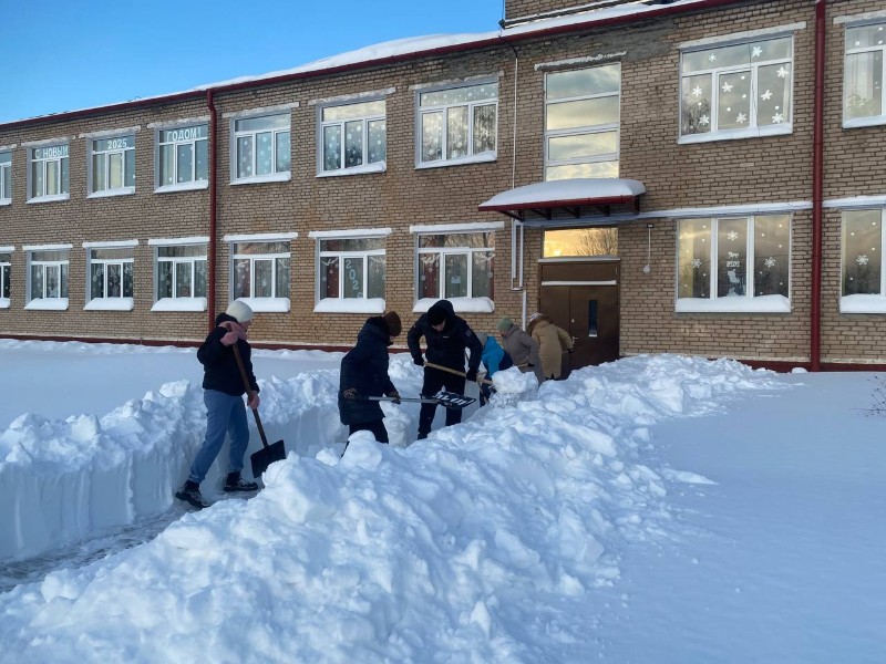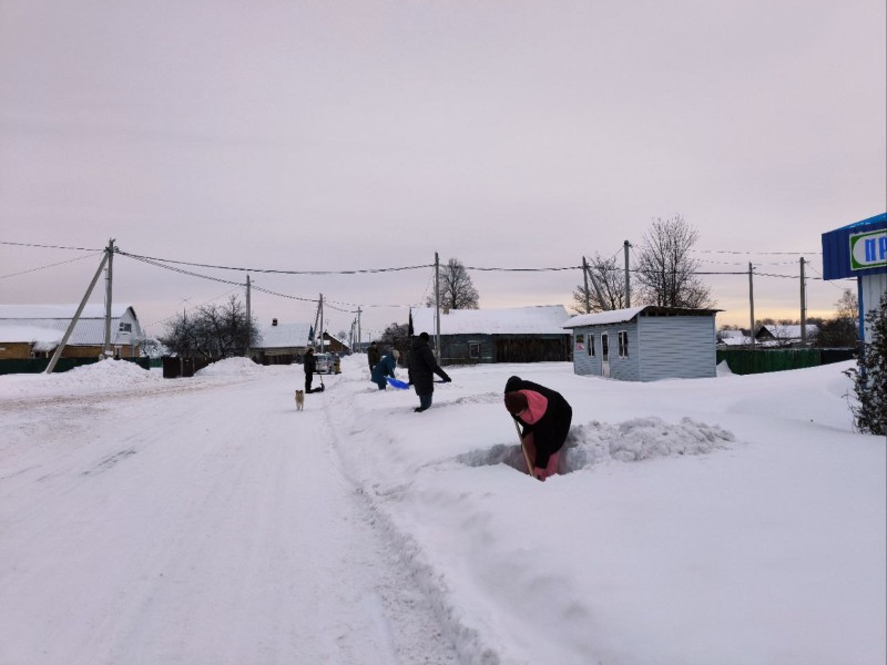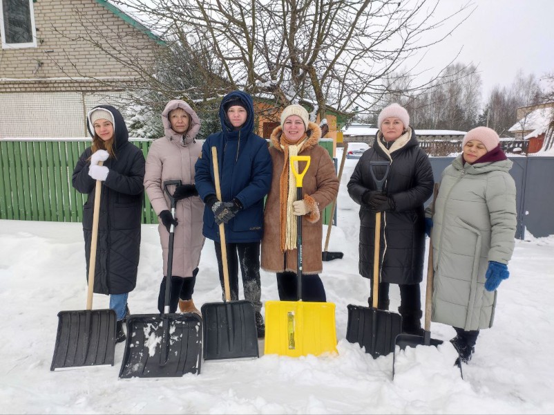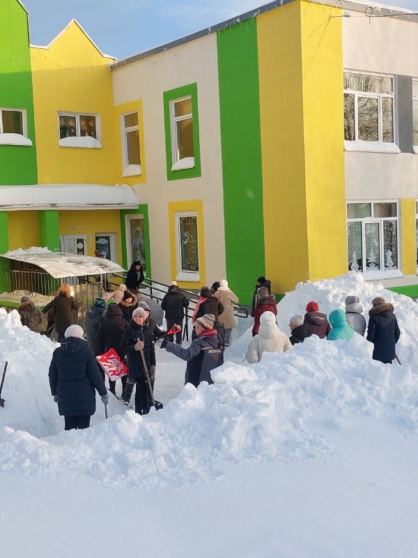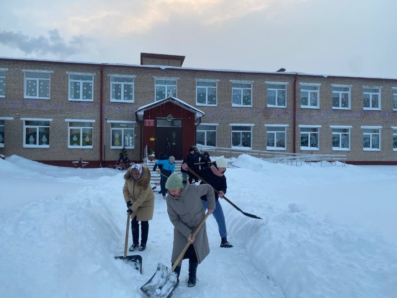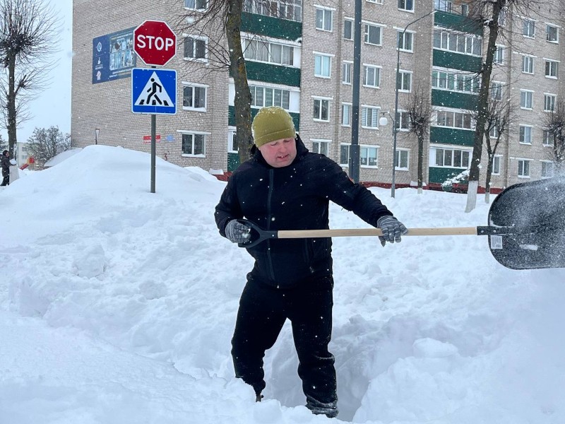Чтобы помочь коммунальным службам, с самого утра к расчистке снега присоединились коллективы организаций и жители района.