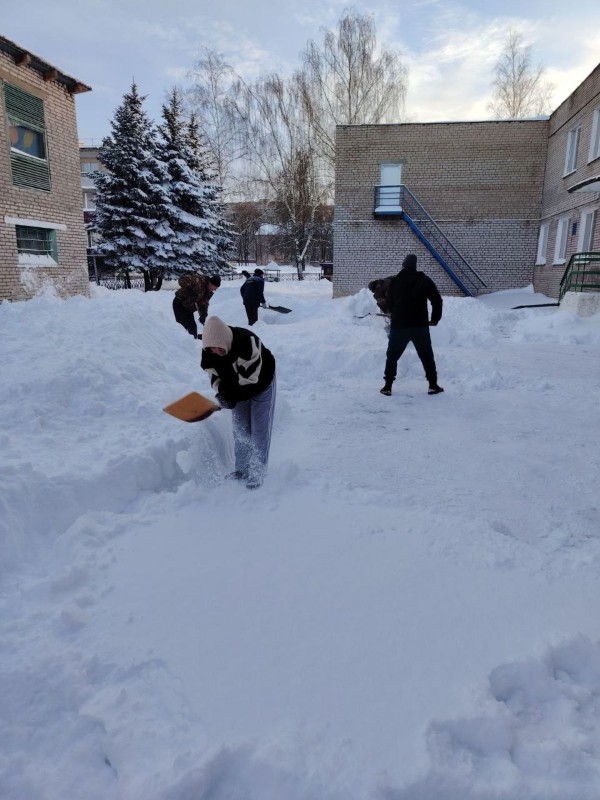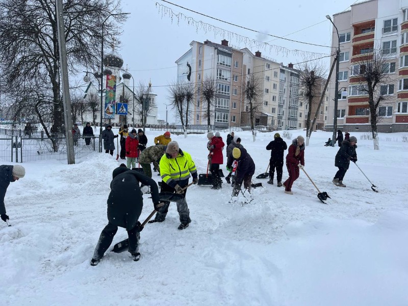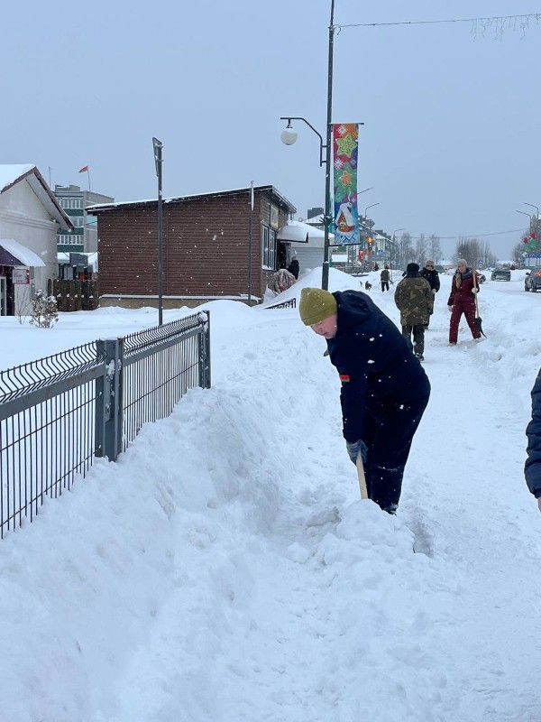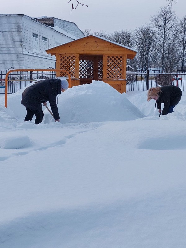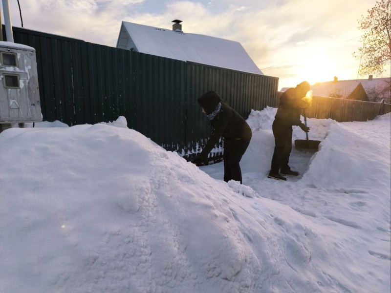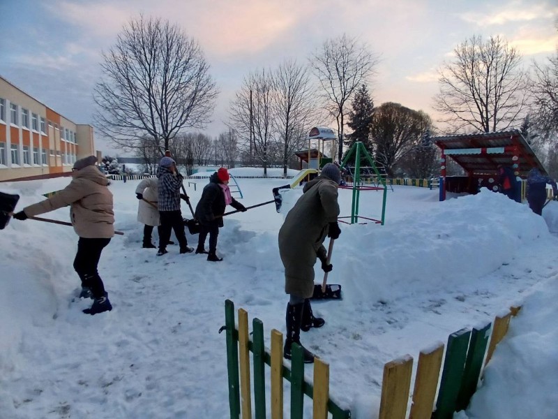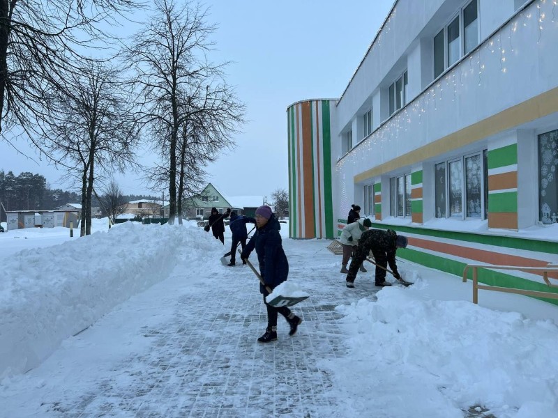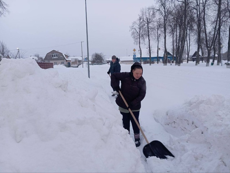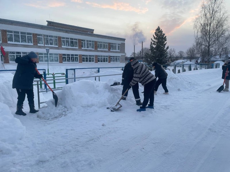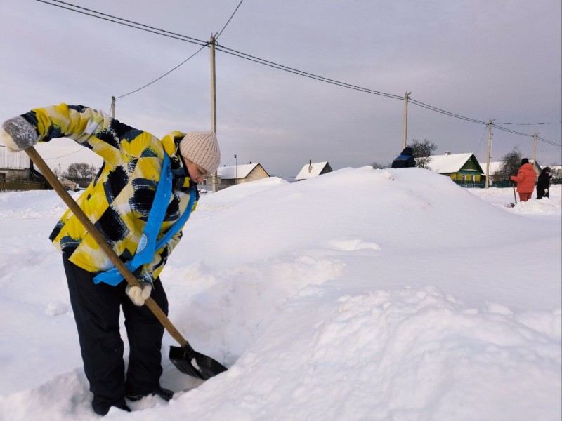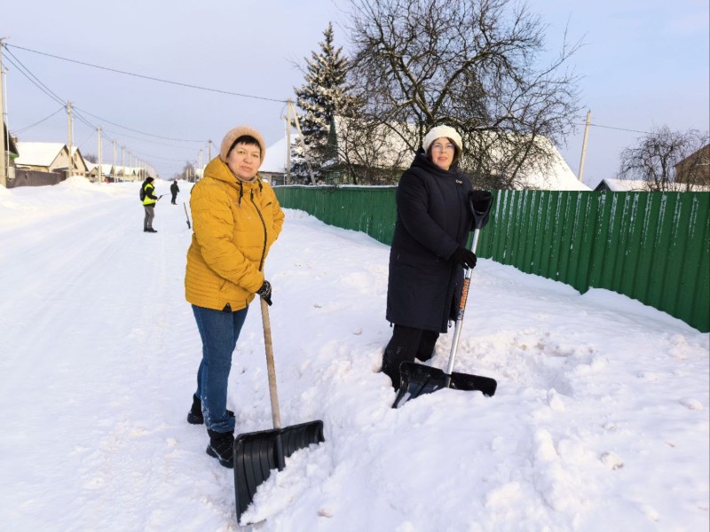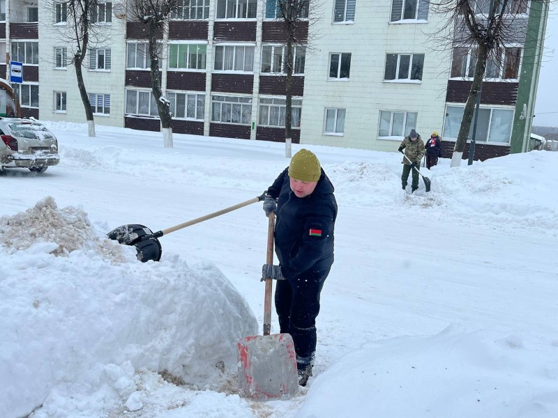 Чтобы помочь коммунальным службам, с самого утра к расчистке снега присоединились коллективы организаций и жители района.