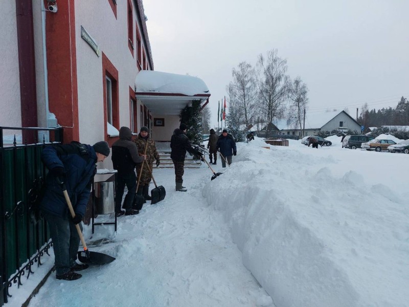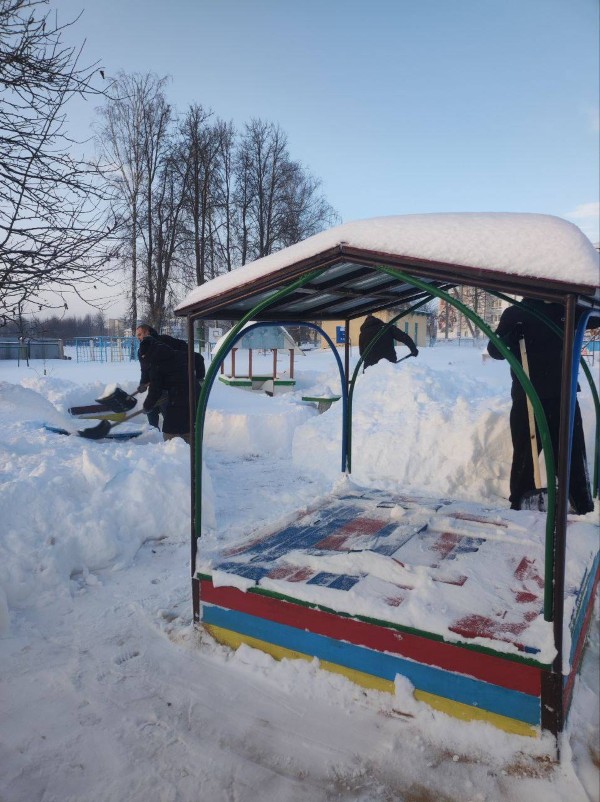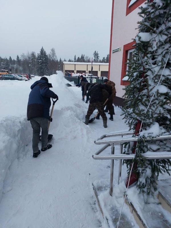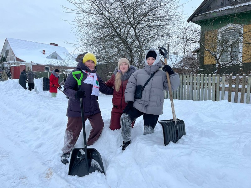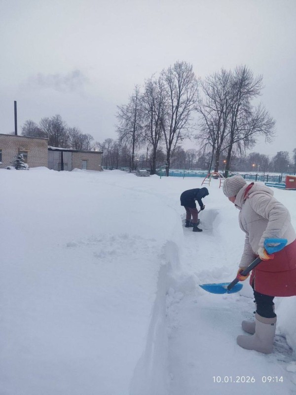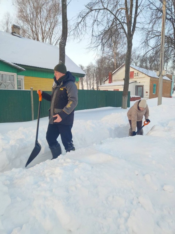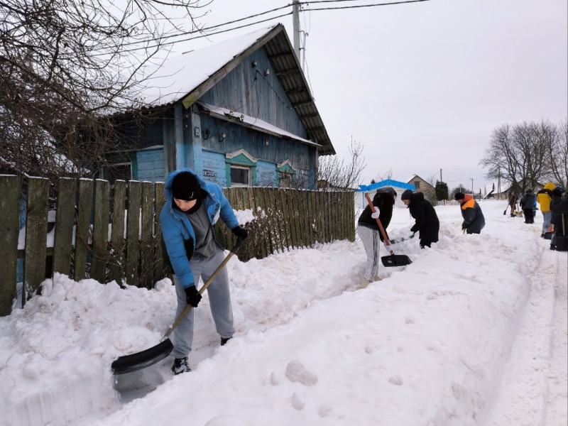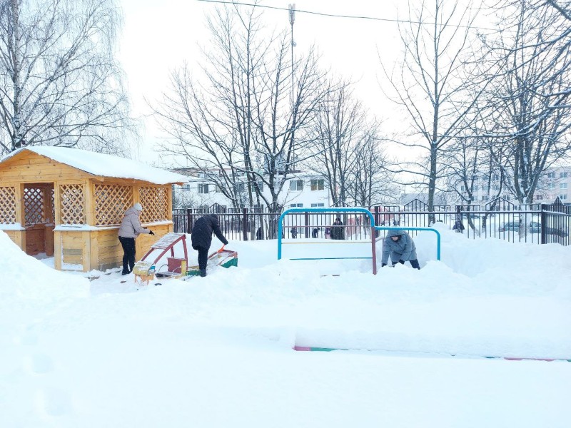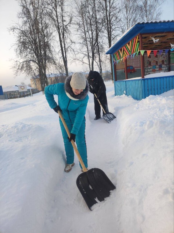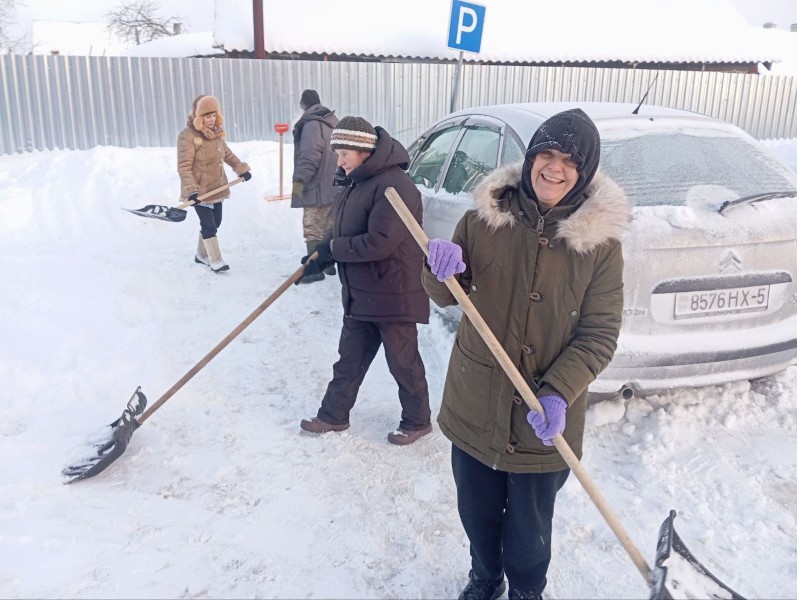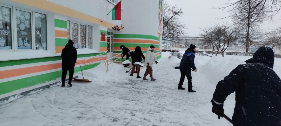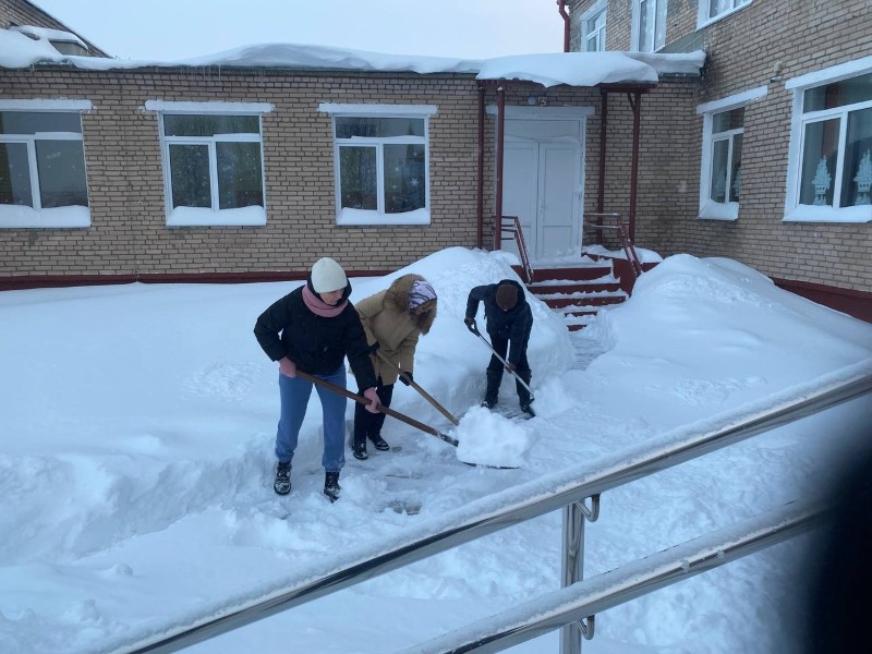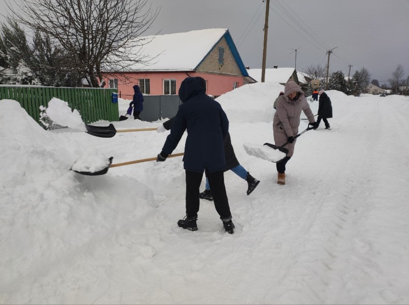 Чтобы помочь коммунальным службам, с самого утра к расчистке снега присоединились коллективы организаций и жители района.