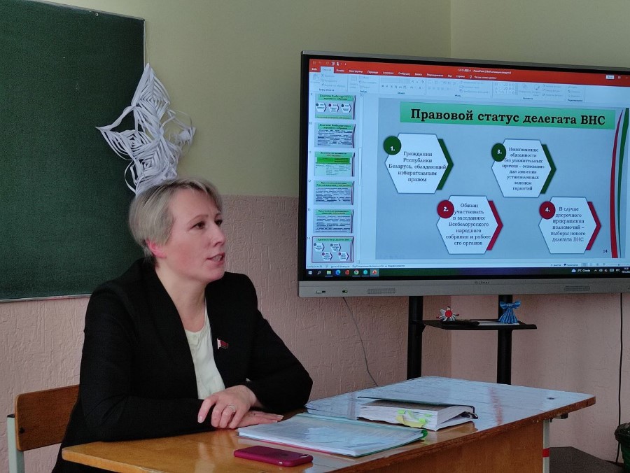 О проекте Закона Республики Беларусь «О Всебелорусском народном собрании». Ольга Васильевна поблагодарила педагогов за их нелегкий труд. И, конечно, же поздравила с наступающими праздниками. Подробнее о встрече читайте в ближайшем номере районной газеты