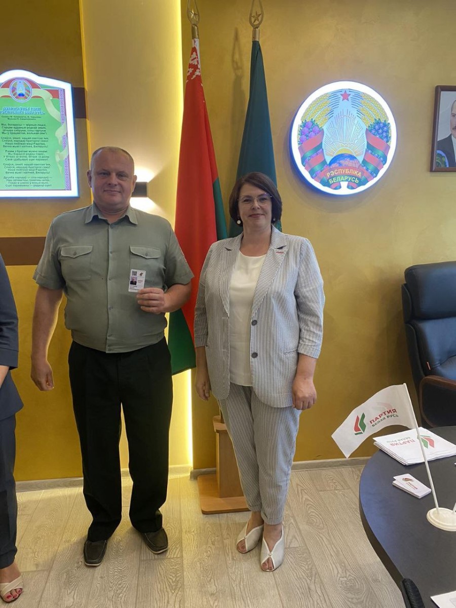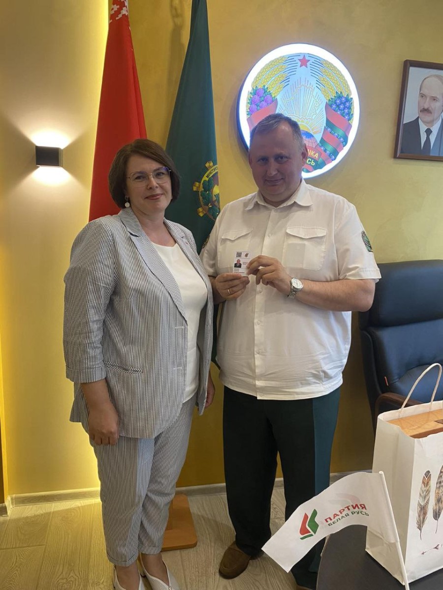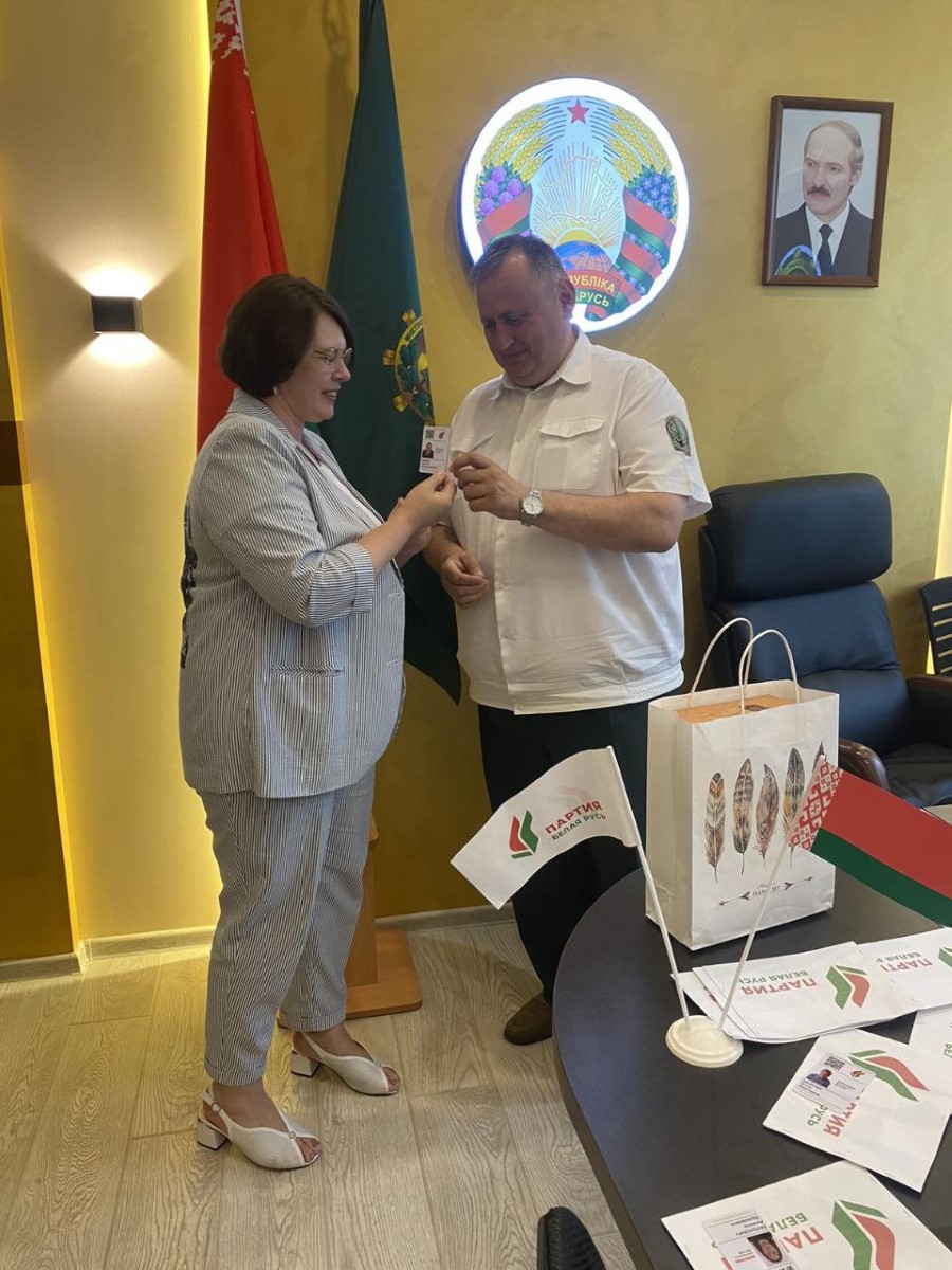 В завершении совещания в торжественной обстановке вручили членские билеты работникам лесхоза вступившим в ряды Березинского районного отделения Минской области Белорусской политической партии "Белая Русь".