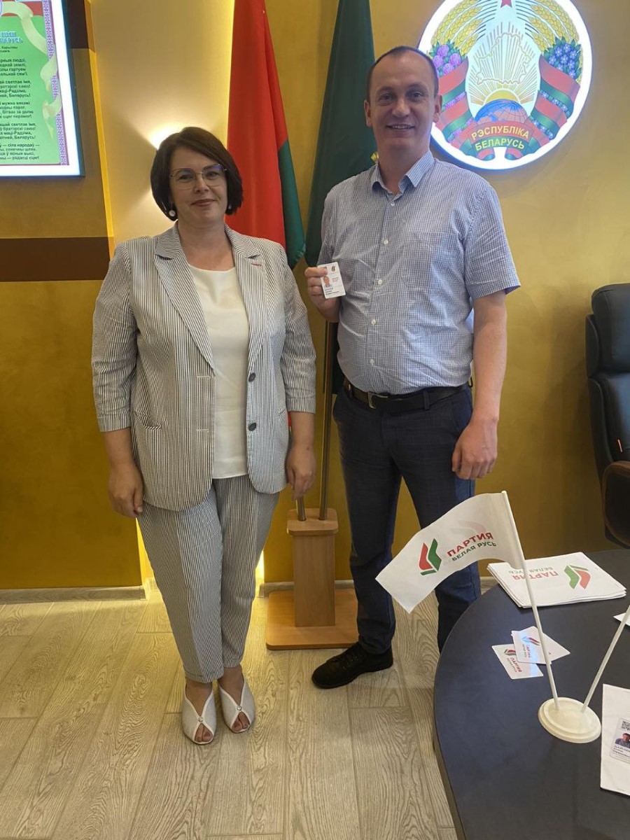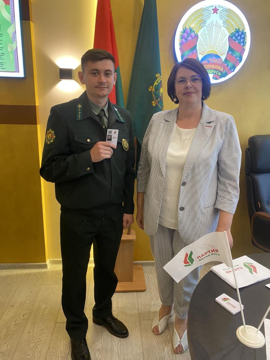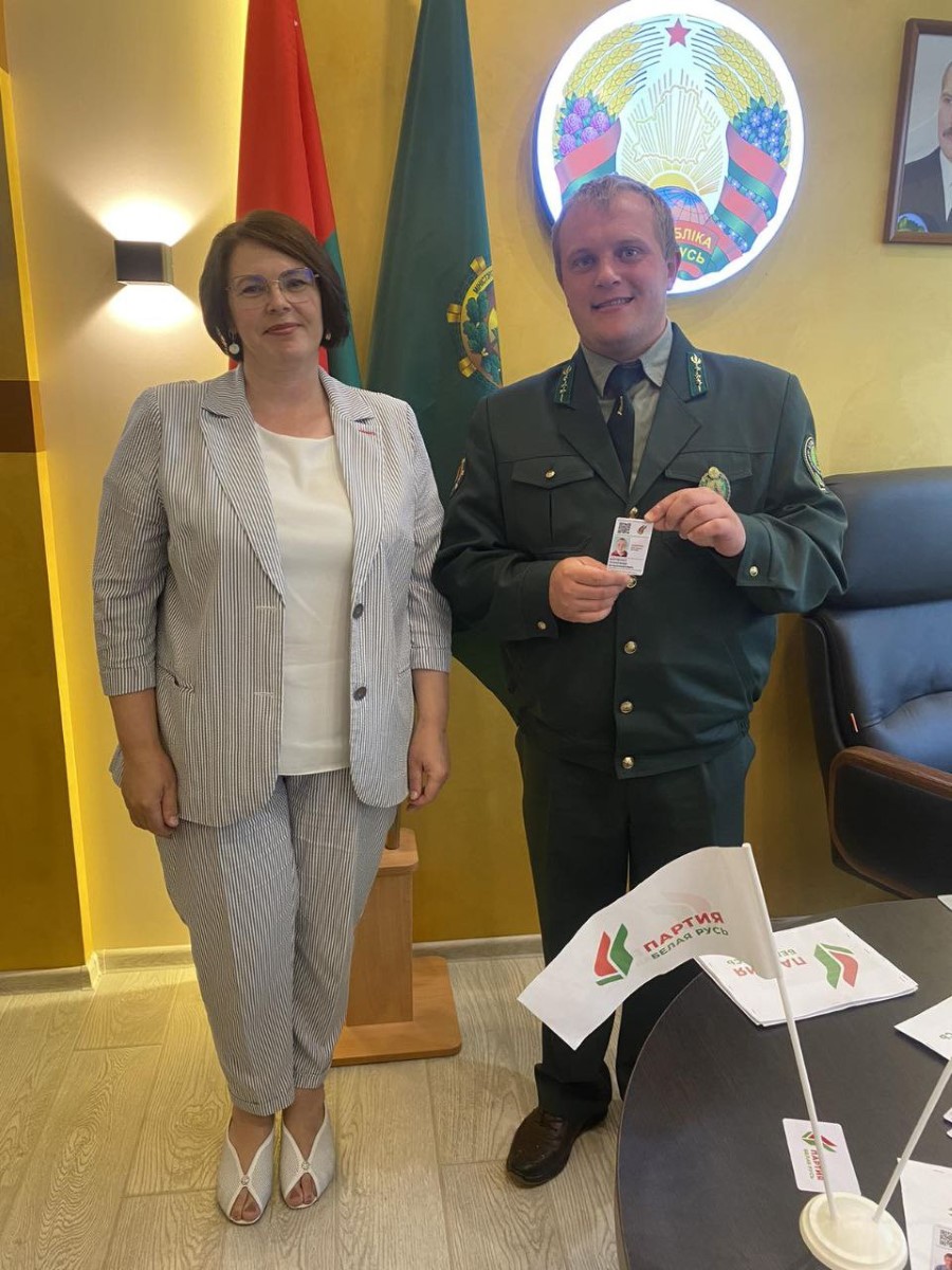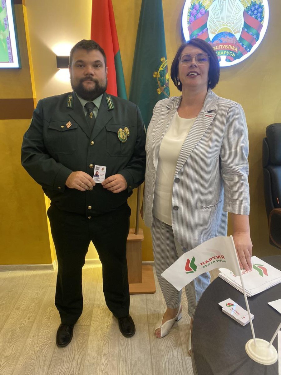 В завершении совещания в торжественной обстановке вручили членские билеты работникам лесхоза вступившим в ряды Березинского районного отделения Минской области Белорусской политической партии "Белая Русь".