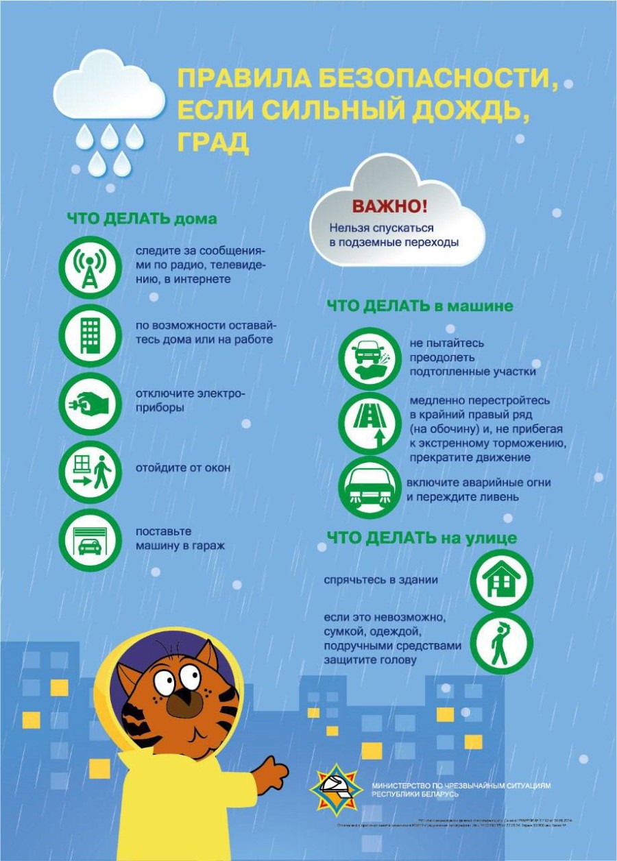 во время сильного дождя не спускайтесь в подземные переходы и другие заглубленные помещения;