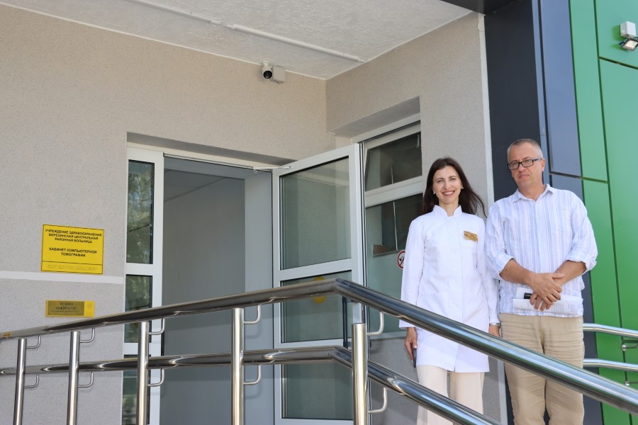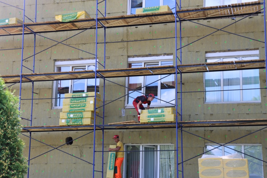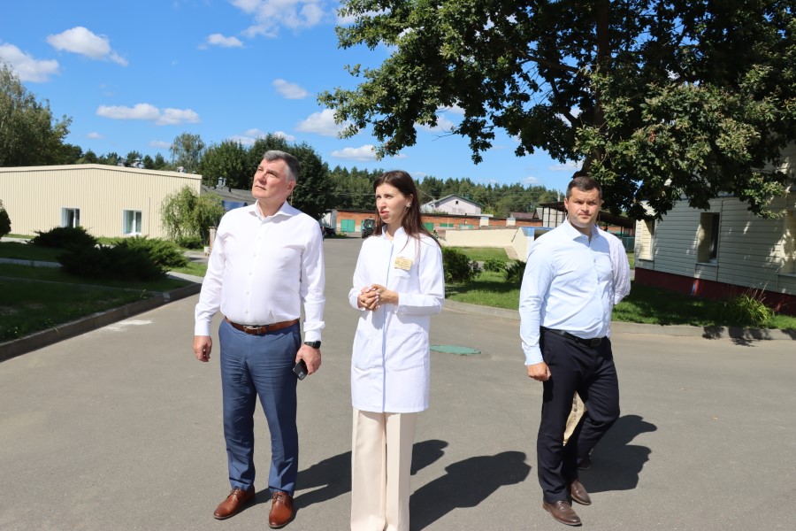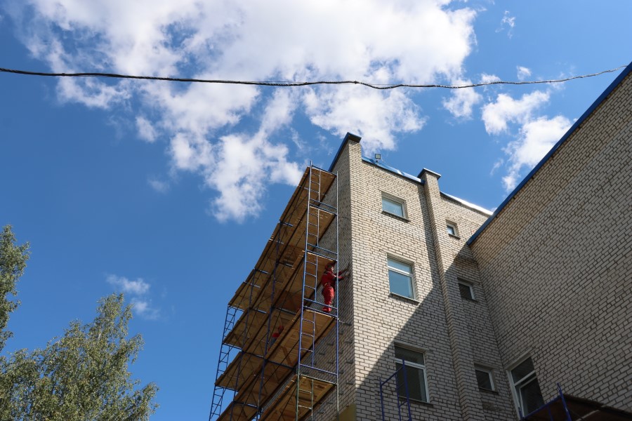 В ходе посещения объекта ознакомился с ходом ремонта терапевтического корпуса, где будет установлен КТ, оценил идущий ремонт фасада здания ЦРБ.