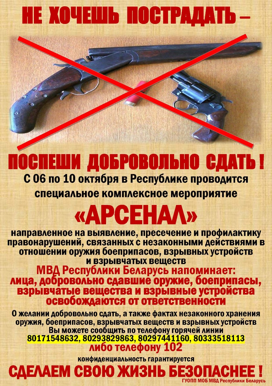 По закону граждане добровольно предъявившие не учтённое в установленном порядке огнестрельное оружие, боеприпасы, взрывчатые вещества, освобождаются от ответственности. Это прямо прописано в уголовном кодексе Республики Беларусь.