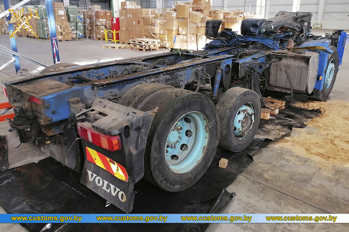 А минскими таможенниками в пункте таможенного оформления «Великий Камень» пресечен факт незаконного перемещения из Литвы грузового автомобиля VOLVO, распиленного на две части.