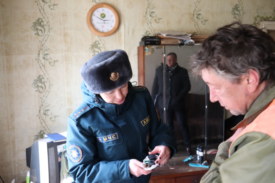 У той дзень мы пабывалі ў дзясятку дамоў і пераканаліся ў тым, што тут берагуць сваё жыццё і маёмасць не на словах. Нормы супрацьпажарнай бяспекі тут захоўваюцца належным чынам. Калі ж і выяўляліся асобныя заўвагі, то былі яны дробнымі і лёгкавыковаемымі: устанавіць крышку на размеркавальную каробку правадоў, ачысціць праводку ад шпалераў, падправіць дзверцы ў пячной топцы, памяняць сілкаванне ў пажарным апавяшчальніку… Адзін з такіх апаратаў члены рэйдавай устанавілі прама ў ходзе візіту, калі выявілі, што ў доме знаходзіцца пажылая жанчына – інвалід першай групы.