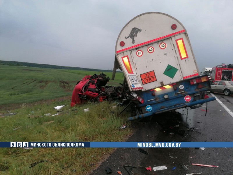 Предварительно, 2 июня около 16:40 в Крупском районе на 475 км автодороги М-1 "Брест – Минск – граница Российской Федерации" произошло ДТП. 64-летний водитель, управляя грузовым автомобилем Renault Premium (бензовоз), двигался в направлении Минска. Во время движения лопнуло колесо, в результате чего водитель не справился с управлением и выехал на полосу встречного движения. Там произошло столкновение с грузовыми автомобилями Fiat Ducato и Iveco Daily, затем бензовоз съехал в кювет.