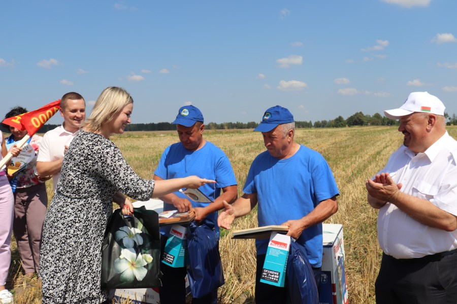 Дадавала хвалявання ім і тое, што на да іх на палеткі прыбыла прадстаўнічая дэлегацыя для таго, каб павіншаваць істотнай працоўнай перамогай – асягненнем тысячнага рубяжа на перавозцы збожжа ад камбайнаў. Героі жніва атрымалі падарункі і падзячныя лісты ад старыні раённага выканачага камітэта Дзяніса Дзішука, старшыні абласнога аб’яднання прафсаюзаў Віктара Маліноўскага, старшыні РК прафсаюза работнікаў АПК Марыны Каўзуновіч, аддзела ідэалагічнай работы, культуры і па справах моладзі (Галіна Сакалоўская) і, безумоўна, свайго непасрэднага кіраўніка – дырэктара ААТ “Юрадзец” Аляксандра Крука.