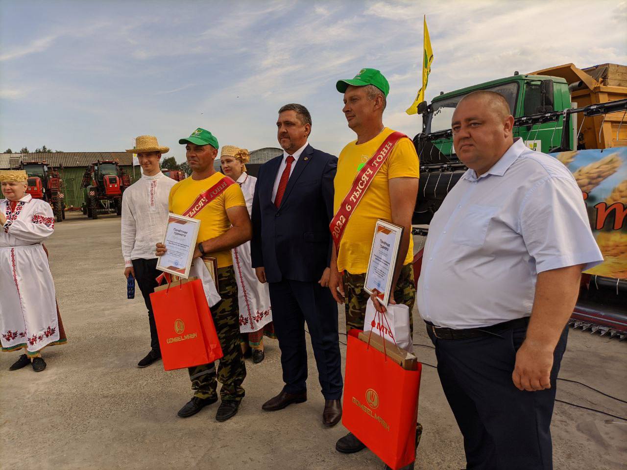 На мехдворе ОАО "Крутогорье-Петковичи" прошло чествование Сергея Максимца и Василия Зура, которые достигли такого результата на белорусском комбайне.