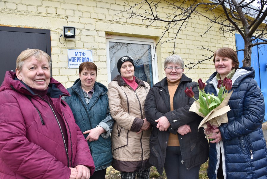 Загадчыца МТФ “Перавоз” Ганна Волкава і аператары машыннага даення – Людміла Драздова, Ірына Белавус, Людміла Салаўёва, Валянціна Цімашэнка