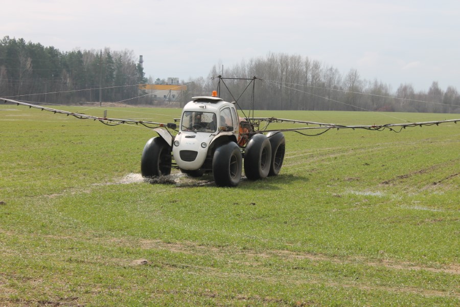 А ў перадавога вадзіцеля ААТ “Бярэзінскі райаграсэрвіс” Дзмітрыя Драгуна сёння занятак крыху іншы: пры дапамозе “Расы” ён падкормлівае азімыя культуры вадкімі ўгнаеннямі. За дзень спраўляецца “запыліць” каля 80 гектараў. Прыступіў да гэтай справы яшчэ да “хаўера” і вось ужо некалькі дзён апрацоўвае асобныя ўчасткі палеткаў, што размешчаны вакол горада. Як прызнаецца Дзмітрый, асноўная яго тэхніка – гэта магутныя МАЗы, іх у вадзіцеля ажно два, адзін з іх атрымаў літаральна летась у лістападзе. Аб тым, наколькі паспяхова ён спраўляецца са сваімі абавязкамі, сведчыць хаця б той факт, што на жніве неаднойчы станавіўся тысячнікам і нават двухтысячнікам.