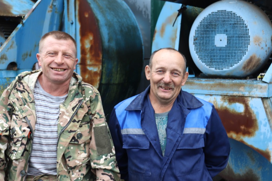 Сярод тых, хто абслугоўвае КЗС, і механізатар Міхаіл Блізнюк. У яго абавязкі ўваходзіць загрузка вільготнага зерня ў сушылку, адвозка ўжо дапрацаванай збажыны на склад, вываз адходаў вытворчасці і г.д. Хапае спраў таксама Юрыю Антаневічу і Мікалаю Федаровічу, якія пазменна займаюцца загрузкай і падгортваннем збожжа.