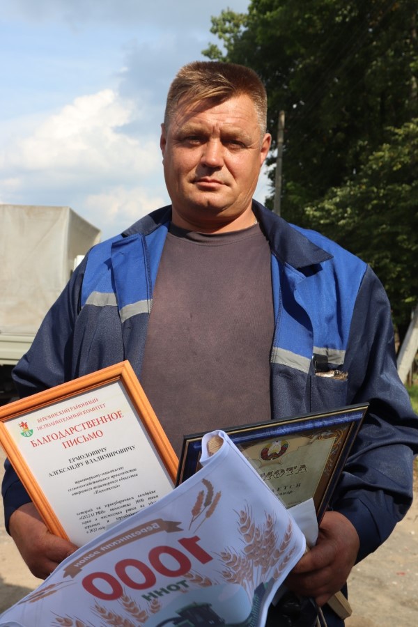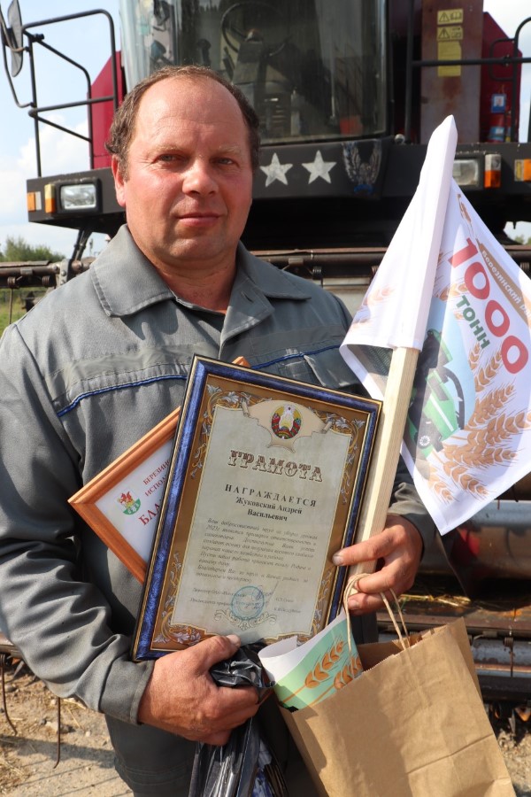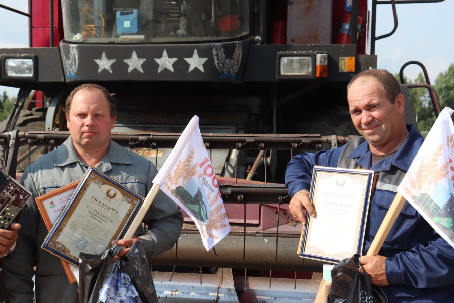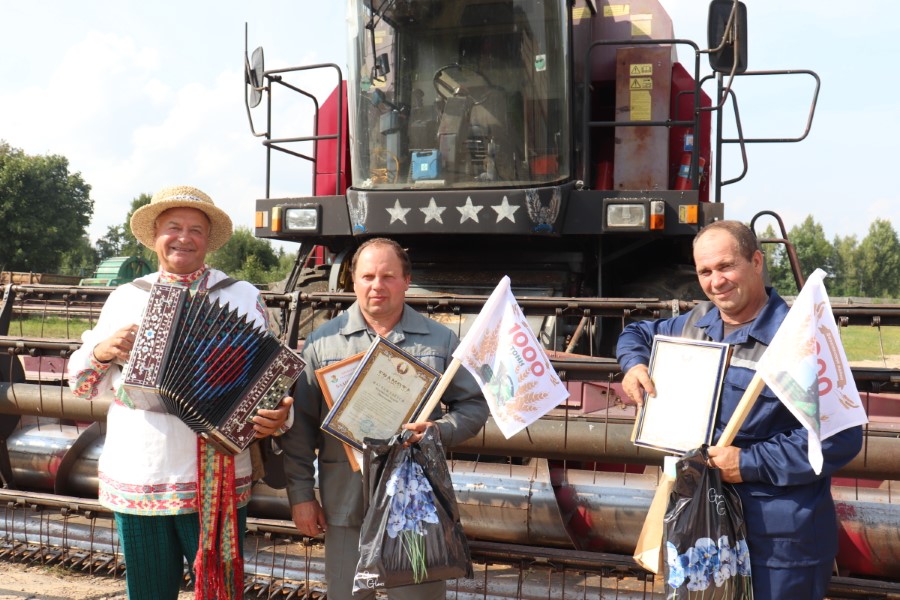 Залихватская гармонь нашего знаменитого музыканта Михаила Попруги звучала также и в честь еще двоих комбайнеров этого хозяйства – Андрея Жуковского и Александра Ермоловича. На их счету – по тысяче намолоченных тонн зерна.