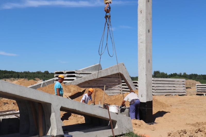 Комплекс станет еще одним перспективным объектом животноводческой отрасли ОАО «Бродец». Работы начаты еще в июне. Этими днями на площадке занято порядка пяти единиц техники (в том числе два крана), монтажники, сварщики и другие рабочие продолжают вести общестроительные монтажные работы. Исходя из проектно-сметной документации, на возведение новостройки отведено девять месяцев, после чего уже оборудованные современной техникой, помещения будут сданы в эксплуатацию.