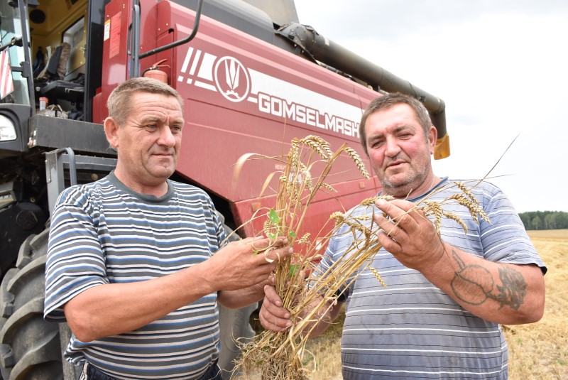 – Пры правядзенні пасяўной мы і сёлета больш арыентаваліся на азімыя культуры, – расказвае дырэктар філіяла Дзмітрый Калацэй. – Яны традыцыйна паказваюць больш стабільны вынік і менш падвяраюцца кліматычным катаклізмам, якіх у нас заўсёды нямала. Таму з агульнага кліну сяўбы яравыя культуры ў нас занялі ўсяго 150 гектараў, а азімых – без малога 700. Дарэчы, азімыхна сёння мы ўжо ўбралі, лічы, 50 працэнтаў плошчаў, а ў апошніх чыслах ліпеня пяройдзем і да яравых. Ужо сёння мы бачым, што ўраджайнасць атрымаем большую, чым летась як і з гектара, так і па валу. Прывяду толькі адзін прыклад у пацвярджэнне гэтых слоў. Азімай пшаніцы нам застаецца ўбраць яшчэ каля 90 гектараў, а леташні валавы яе намалот мы ўжо дасягнулі. І гэта пры тым, што плошчы пад яе мы не павялічвалі.