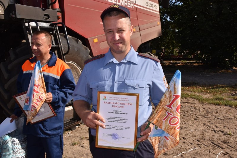 Слова поздравления хлеборобам звучали от первого заместителя, начальника райсельхозпрода Олега Лапытько, директора ОАО «Березинский райагросервис» Александра Автухова и председателя райкома профсоюза работников АПК Марины Ковзунович.