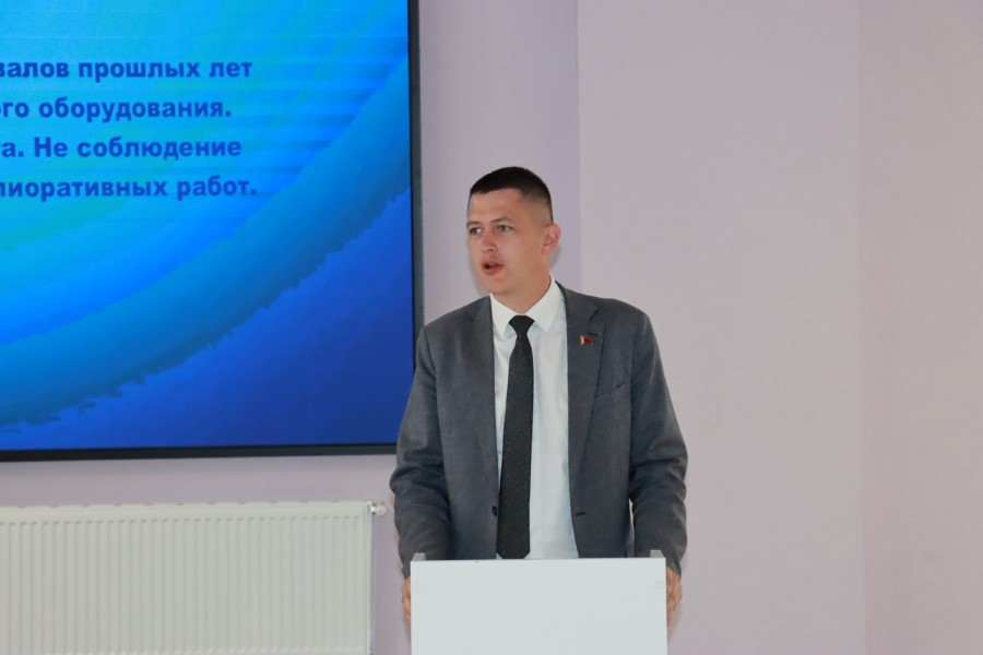 Стартовало мероприятие в административном здании предприятия, где участники ознакомились с повесткой и распорядком дня. Темой семинара было «Ликвидация валов прошлых лет с применением современного оборудования. Технологии обработки пласта. Не соблюдение технологии производства мелиоративных работ». С приветственным словом к собравшимся обратился первый заместитель председателя Березинского райисполкома Олег Лапытько. К слову, Олег Иванович в прошлом был руководителем Березинского ПМС и с вопросами мелиорации знаком на практике.