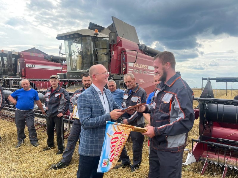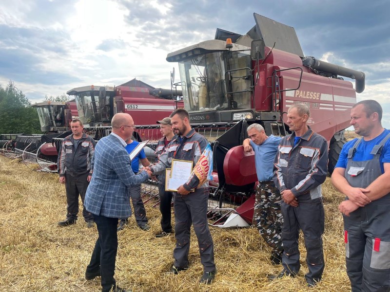 Сегодня передовиков жатвы на поле чествовали председатель районного исполнительного комитета Андрей Соколовский, первый заместитель Александр Крук, председатель профсоюза работников АПК Екатерина Аврамчик, от ОАО «Бродец» поздравил Павел Сугако.