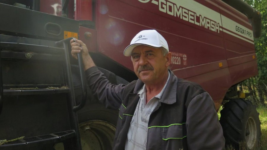 Еще один старожил, Игорь Тисецкий, трудится в хозяйстве вот уже 45 лет. Помогает ему Сергей Якушенко. А молодой комбайнер Николай Соболь на жатве только пять сезонов.