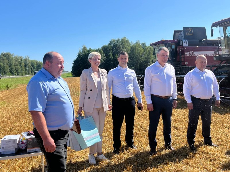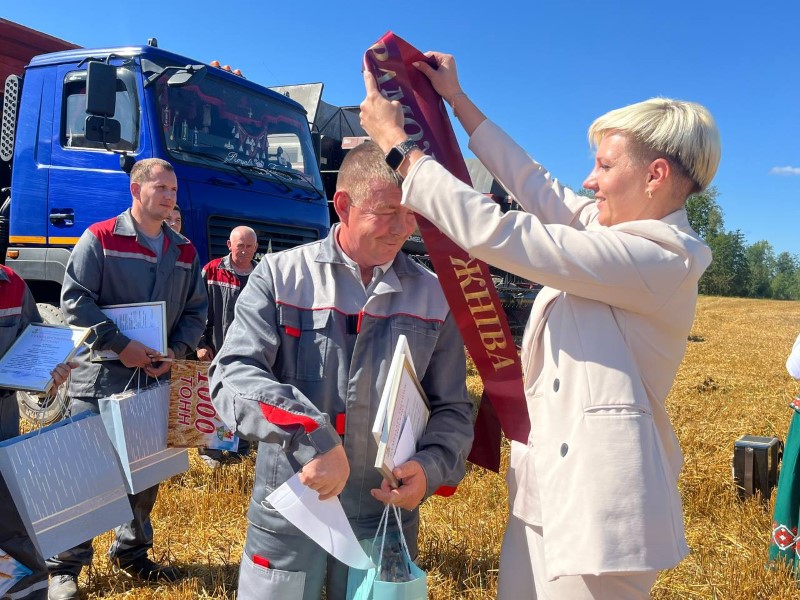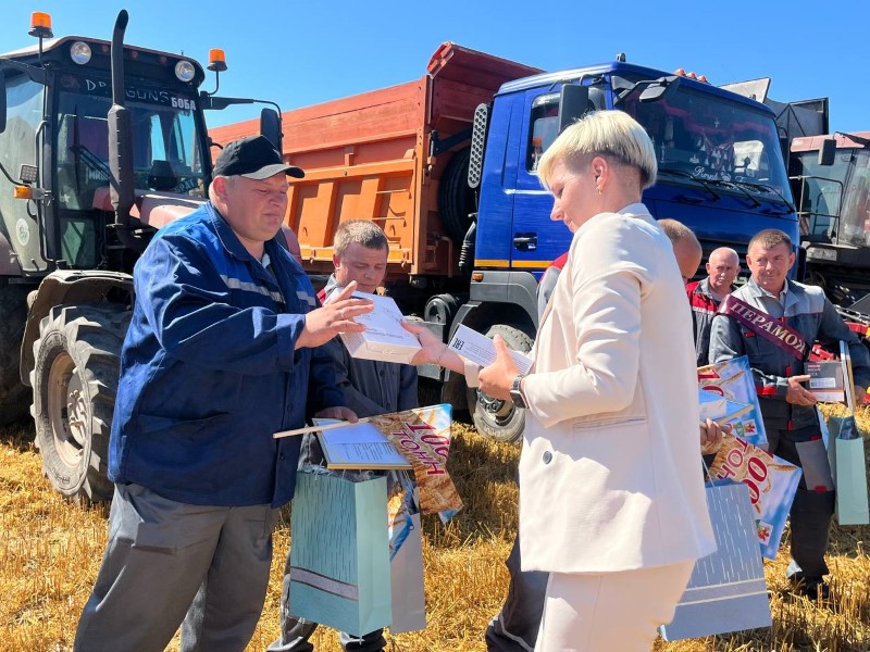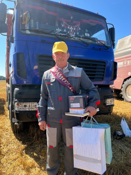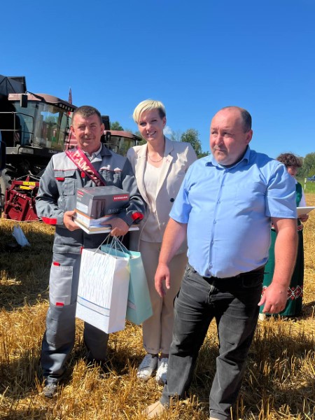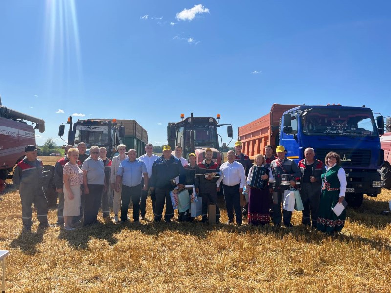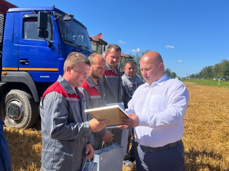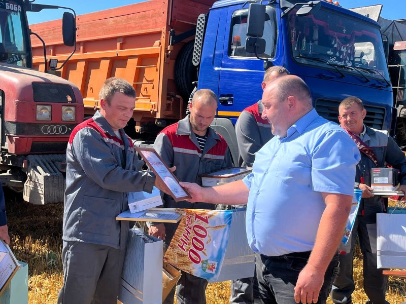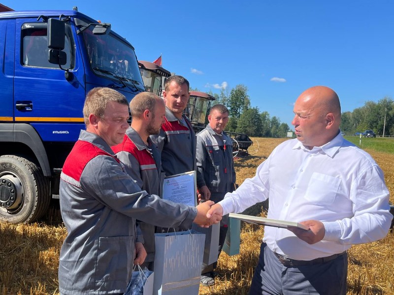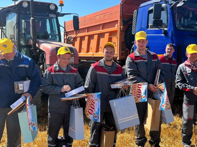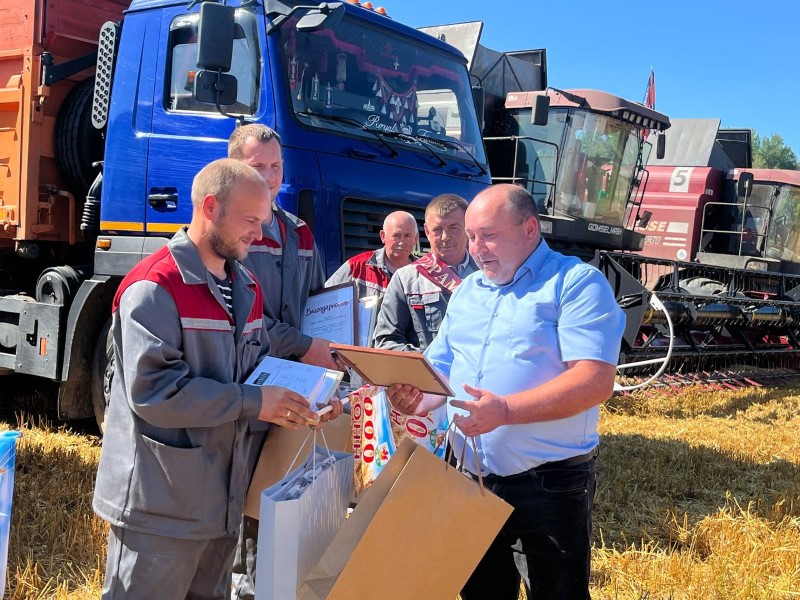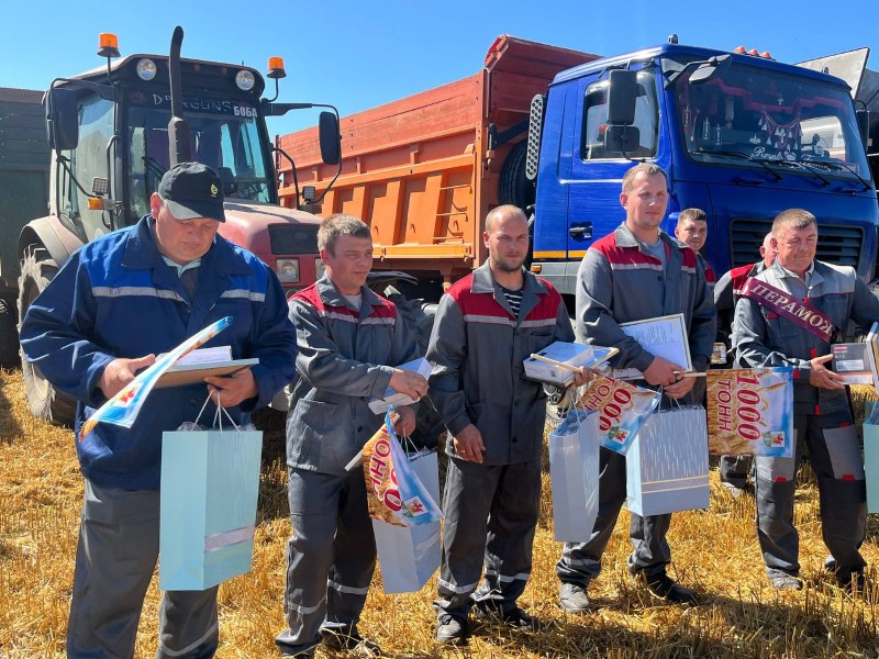 Поздравляли и тысячников комбайновый экипаж СУП «Здравушка-Агро» в составе Сергея Бурого и Дмитрия Лаппо, Горошко Александра и Пенрата Александра.