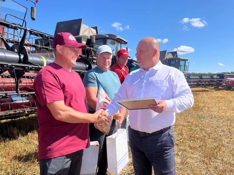 Поздравили хлеборобов начальник главного финансового управления Миноблисполкома Николай Куховец, председатель районного исполнительного комитета Андрей Соколовский, первый заместитель Александр Крук, председатель профсоюза работников АПК Екатерина Аврамчик, директор СУП «АгроМАЗ» Анатолий Дроздов.