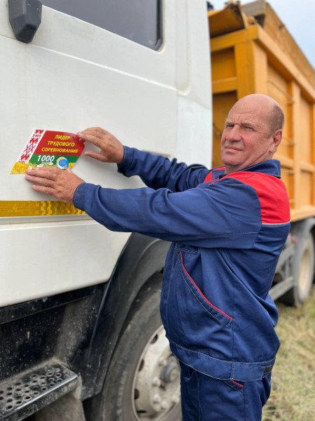 Следующий адрес - ОАО "Богушевичи". Здесь, как и каждый год, в числе первых перевез тысячу тонн зерна водитель Леонид АНТОНЕВИЧ.