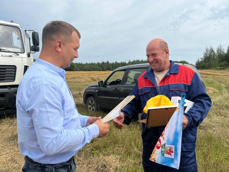 Продолжается награждение лучших на жатве прямо в поле...