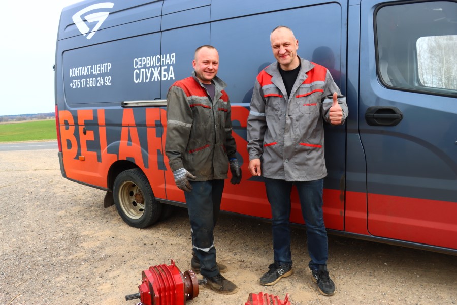 На одном из полей хозяйства встречаем ведущего специалиста послепродажного обслуживания бюро по Минской области сервисного центра ОАО «Минский тракторный завод» Михаила Волокитина и водителя-испытателя Дмитрия Сидроленка. Они устраняли поломку на одном из гарантийных тракторов предприятия.