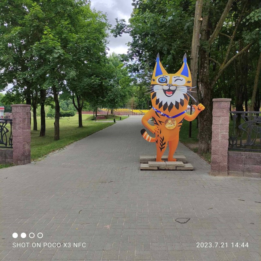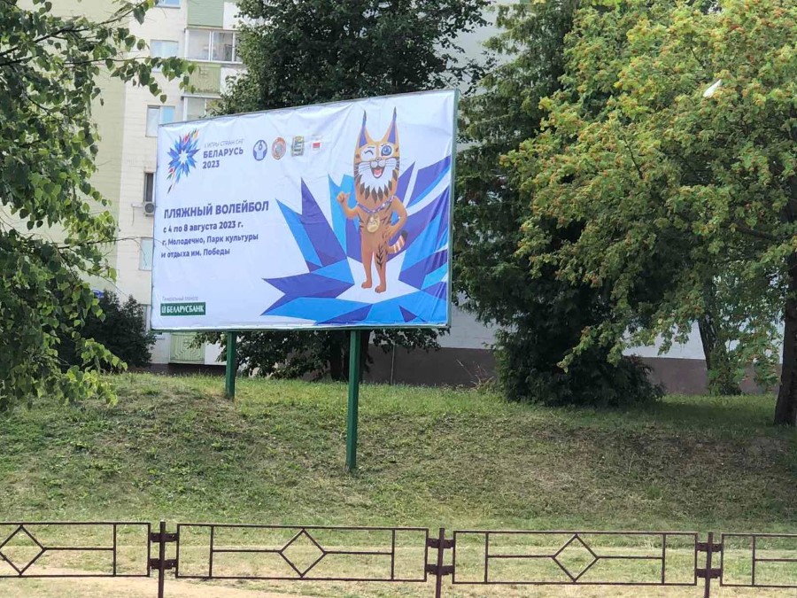 В г. Молодечно установлены банеры, растяжки с символикой Игр, а также фигура талисмана ІІ Игр стран СНГ - «Рыся».