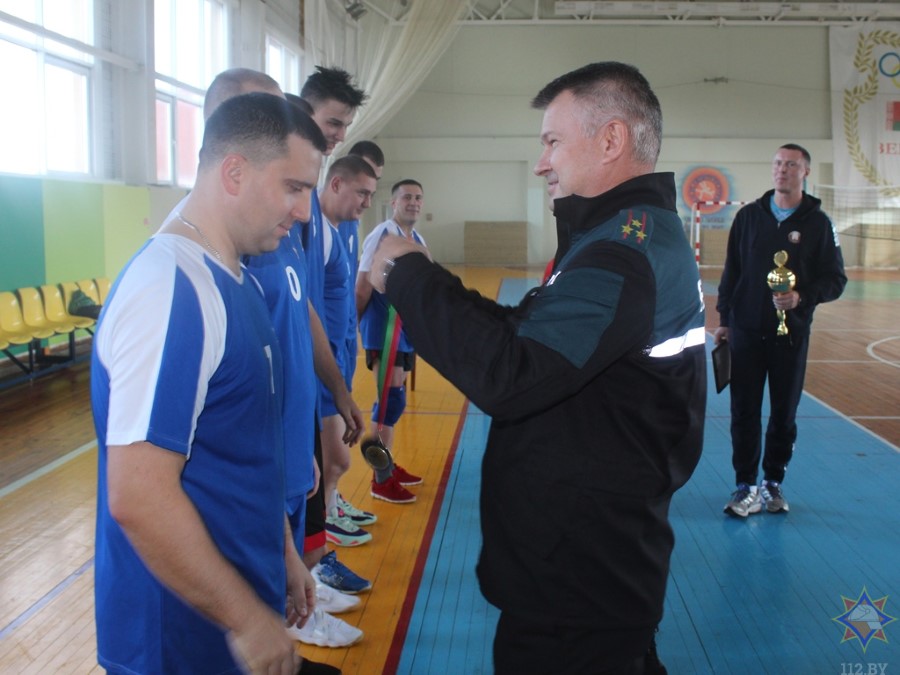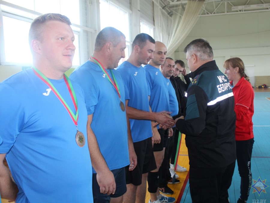 Выяснить, кто из них лучший, съехались победители зональных соревнований: спасатели из Узденского, Березинского, Солигорского, Логойского, Мядельского, Дзержинского районов. В упорной борьбе солигорские спасатели завоевали титул победителя, “серебро” – у спасателей из Дзержинска, третье место завоевали ребята из Узденского райотдела по чрезвычайным ситуациям. Поздравил победителей и вручил дипломы, кубки и медали заместитель начальника Минского областного управления МЧС Виталий Аркадьевич Пекурин. Кроме того, лучшим игроком признан Лукашевич Дмитрий (Дзержинский район), лучшим нападающим – Кулагин Станислав (Солигорский район), титул “лучший связующий” по праву завоевал Томашевский Владислав (Дзержинский район).