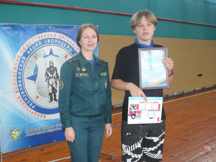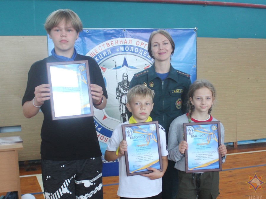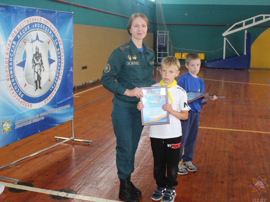 Команды юных пожарных «Сирена» (ГУДО «Центр творчества детей и молодежи Березинского района»), «Экстремалы» (ГУО «Средняя школа №3 г.Березино») и «Спасай-ка» из ГУО «Средняя школа №2 г.Березино» собрались для того, чтобы нескучно провести время и посоревноваться. Сначала детям рассказали о деятельности Белорусской молодежной общественной организации спасателей-пожарных. Затем ребята смогли показать свою ловкость и силу во время спортивных эстафет, а также проявить сообразительность во время интеллектуальных конкурсов. Дети складывали «домино безопасности», определяли правильность поведения при различных чрезвычайных ситуациях, складывали из букв слова, связанные с пожарной службой, рисовали причины пожаров. Во время подвижных эстафет они «тушили» условный пожар, выбирались из «болота», коллективно эвакуировались и называли знаки эвакуации. По итогам соревнований лучшими стали ребята из КЮСП «Сирена», «серебро» - у команды «Спасай-ка», почетное третье место заняли юные спасатели из команды «Экстремалы».