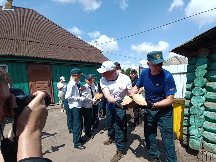 "Колка дров по-президентски" завершилась встречей с жителями Копыси, которым спасатели вместе с воспитанниками военно-патриотического клуба "Память", созданного при координацией МЧС, не просто привезли дровишки, а помогли уложить их в поленницы.
