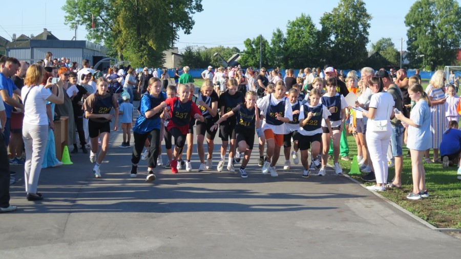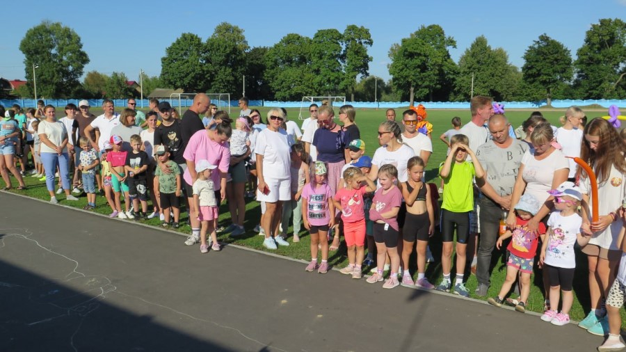 А людей было много. В пробеге предлагалось поучаствовать и школьникам со всего района, и трудовой молодежи, и людям старшего возраста, и даже годовалым ползункам! Открыли летний праздник, как и положено, государственным гимном. После этого слово взяла начальник управления по образованию спорту и туризму Березинского райисполкома Алеся Титова. Алеся Алексеевна поприветствовала всех, в особенности поблагодарила участников, которые нашли время для встречи друг с другом.