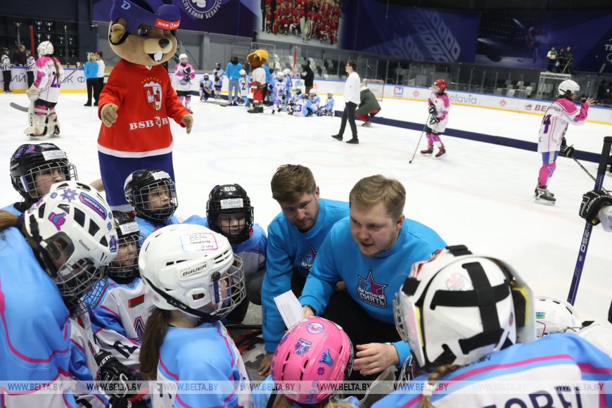 Для участниц сегодняшнего ледового праздника были проведены мастер-классы. Секретами спортивного мастерства поделились Андрей Ковалев, Артем Демков, Андрей Михалев, Илья Шинкевич и другие известные хоккеисты и тренеры.