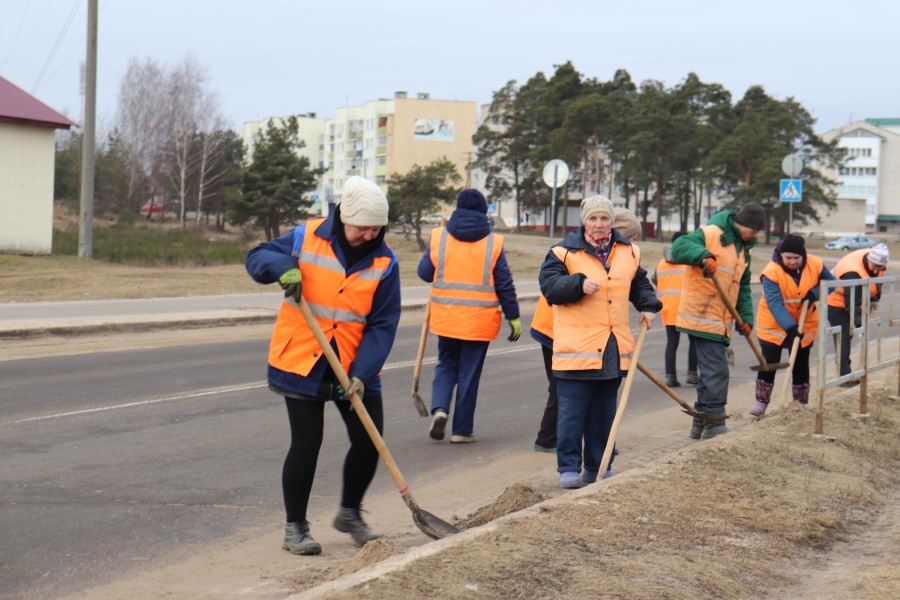 Першымі да навядзення парадку прыступілі дарожнікі, бо за зімовы перыяд дарожнае палатно ў многіх месцах аказалася пашкоджаным. Па словах намесніка старшыні раённага выканаўчага камітэта Сяргея Бабуры, зараз работнікі ДРБУ-192 і ДЭУ-6 заняты ліквідацыяй крытычнай ямачнасці, як афіцыйна называецца гэты від работ. Вядуцца яны на рэспубліканскіх дарогах Р-62 і Р-67, а таксама на трасе М-4.
