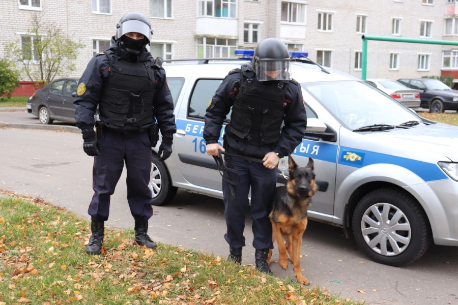 У дзень майго візіту дзяжурыла група затрымання ў складзе старшага сяржанта міліцыі Васіля Ярмоліна і міліцыянера-кінолага прапаршчыка міліцыі Валянціна Нікаленка. Калі не паступаюць уводныя дадзеныя ехаць на спрацоўку сігналізацыі, задача групы – патруляваць гарадскую мясцовасць па зацверджаным маршруце.