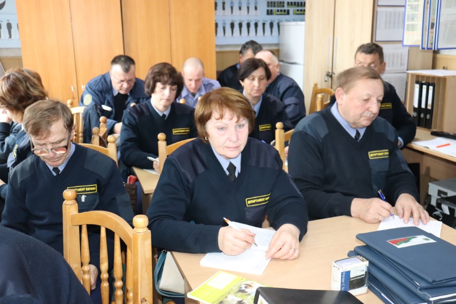Існуе шмат незаўважных дэталяў, пра якія патрабуецца ведаць вартаўніку. Каб дакладна імі валодаць і не забывацца, штомесяц у апошнія аўторак-сераду праводзяцца тэматычныя заняткі, якія вядзе начальнік аховы ўчастка Пётр Цюхай. Напрыклад, у кастрычніку тэма заняткаў значылася “Надгляд транспартнага сродка”. Важная тэма на службе. Як гэта правадзіць правільна, якія пытанні задаваць вадзіцелю, якія дадзеныя ўносіць у спецыяльны журнал – усім прысутным дакладна тлумачыць Пётр Іванавіч. У ахоўнай справе дробязяў не існуе. Хоць заняткі паўтараюцца з года ў год, аднак як сведчыць вядомая прымаўка: паўтарэнне – маці вучэння.