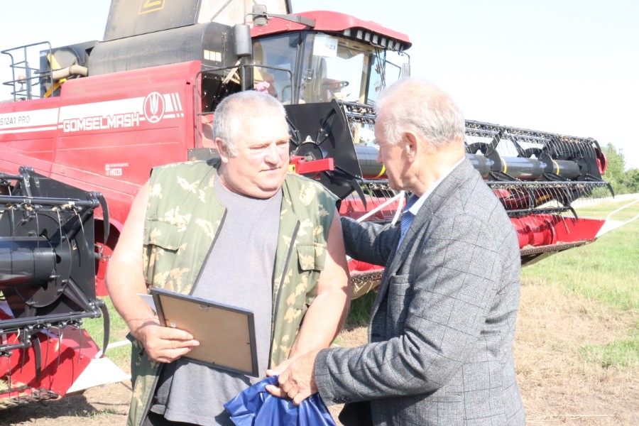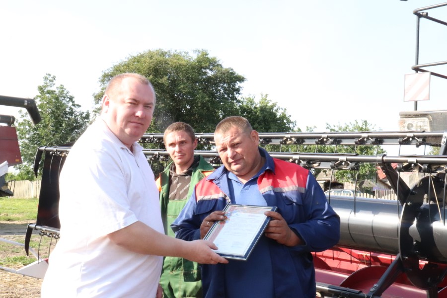 Уручаючы ўзнагароды і падарункі, галоўны прававы інспектар працы Андрэй Лагвінец пажадаў аграрыям новых дасягненняў на ніве ўборкі збожжа і павіншаваў з дасягнутымі поспехамі.