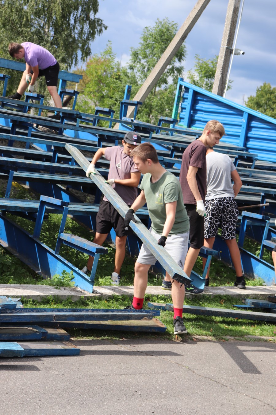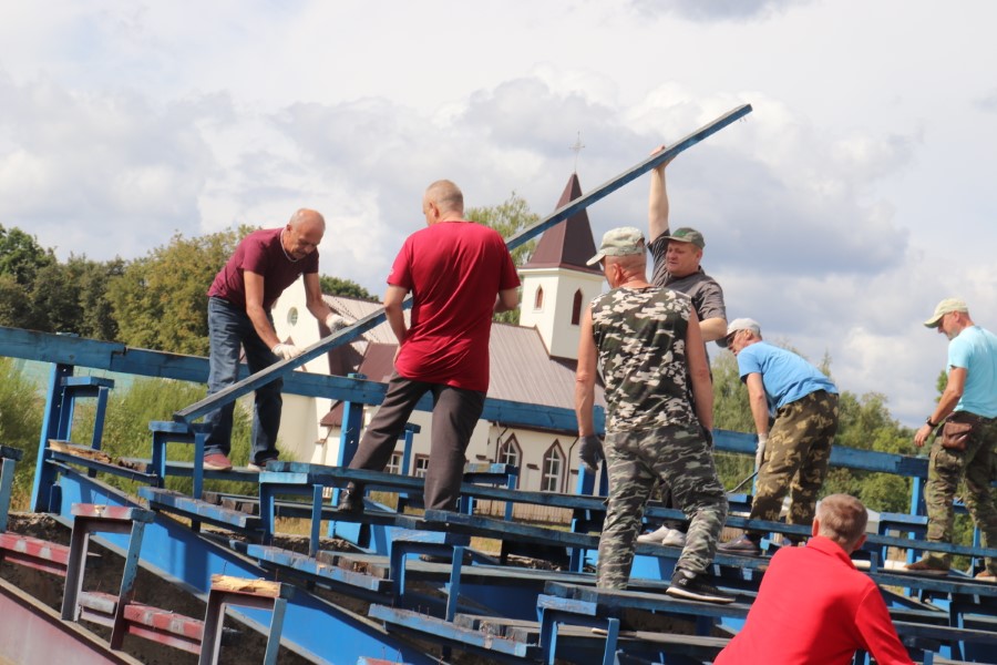 -Сегодня на демонтаже трибун я уже не первый день, - рассказывает инструктор-методист ФОЦ «Лазурный» Павел Гущин. – Еще в минувший четверг члены футбольного клуба «Березино», где я являюсь тренером, после очередной тренировки уже приступили к этой работе. Хочется побыстрее увидеть наш стадион обновленным. Ведь на нем нам проводить встречи и игры, добиваться успеха и радовать своей игрой зрителей. А если им будет здесь удобно и стадион станет собирать больше зрителей и болельщиков, то и у нас настроение будет на уровень выше, а значит и побед будет больше.