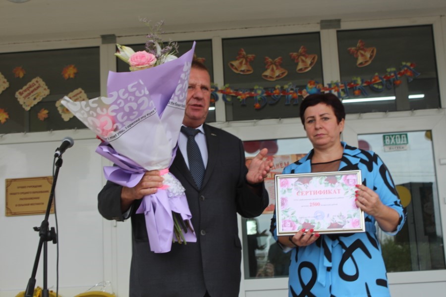 Сертификат на 2,5 тысячи рублей вручил директору школы и руководитель СУП «АгроМАЗ» Валерий Цедрик. Грамотами и ценными подарками он отметил и ряд старшеклассников школы, которые принимали активное участие в жатве и выделились своим трудом и ответственным к нему отношением.