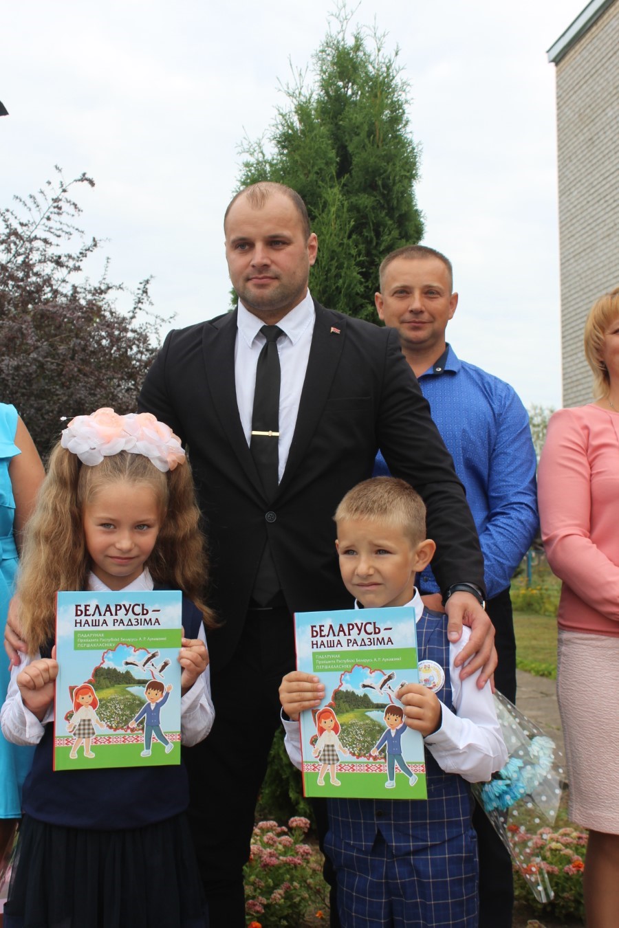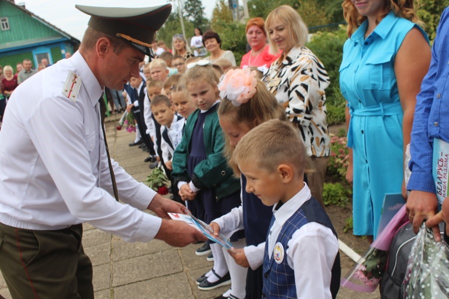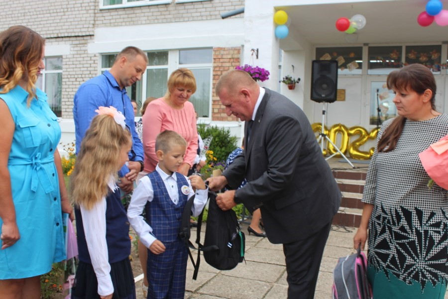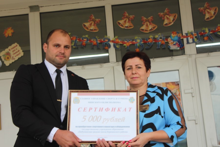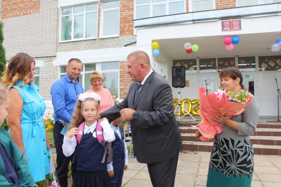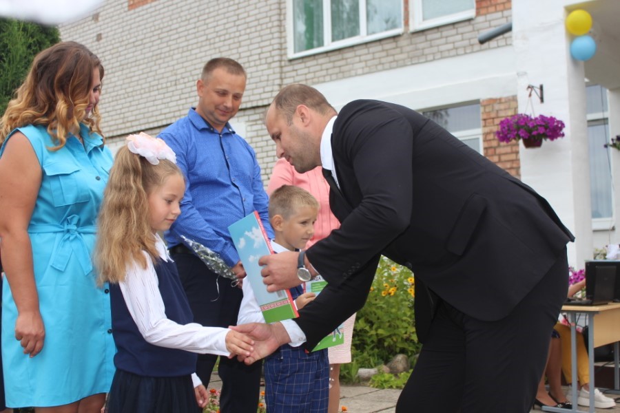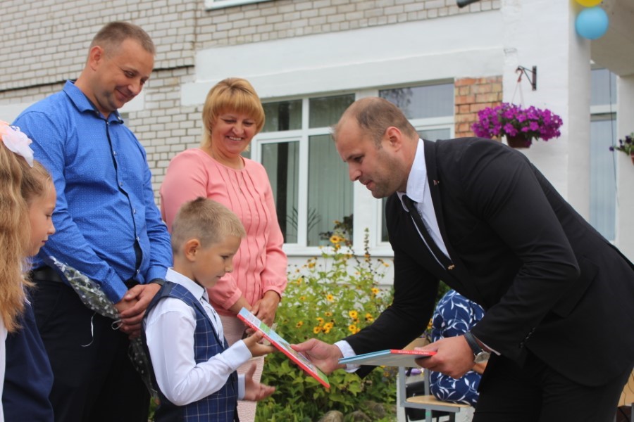 Мероприятие изобиловало приятными сюрпризами и подарками, множеством праздничных слов и поздравлений. Старт этой эстафете дал, как настоящий спортсмен, начальник главного управления спорта и туризма Минского облисполкома Евгений Булойчик, который преподнес в подарок школе сертификат на 5000 рублей. Он же вручил ученикам-первоклассникам подарок от Президента Республики Беларусь Александра Лукашенко – книги о нашей Родине.