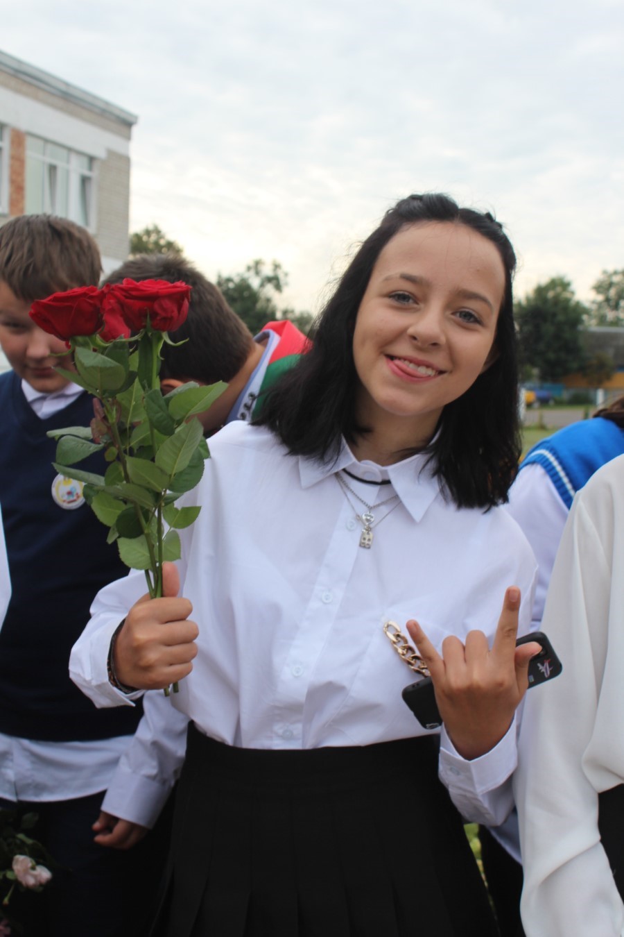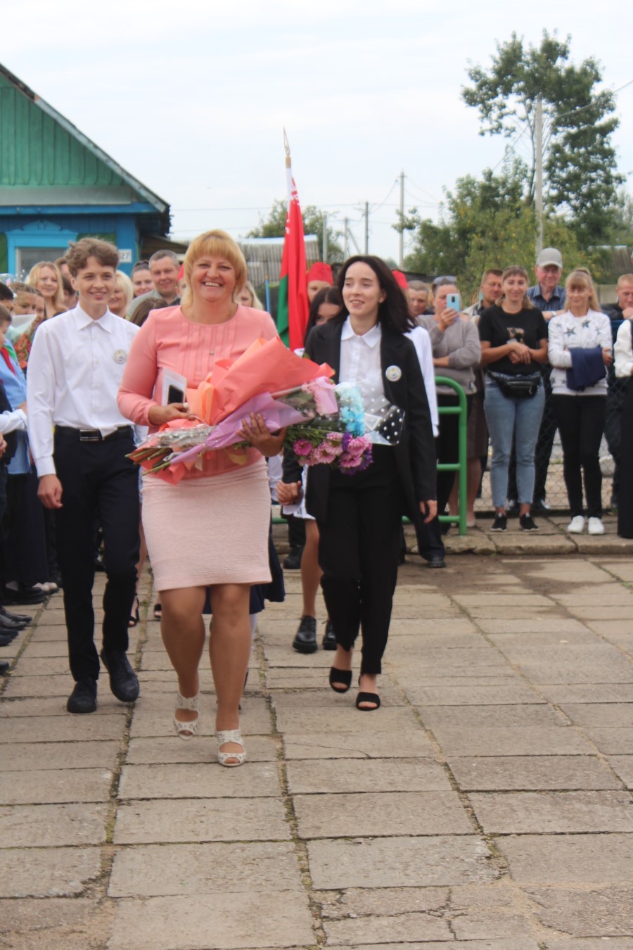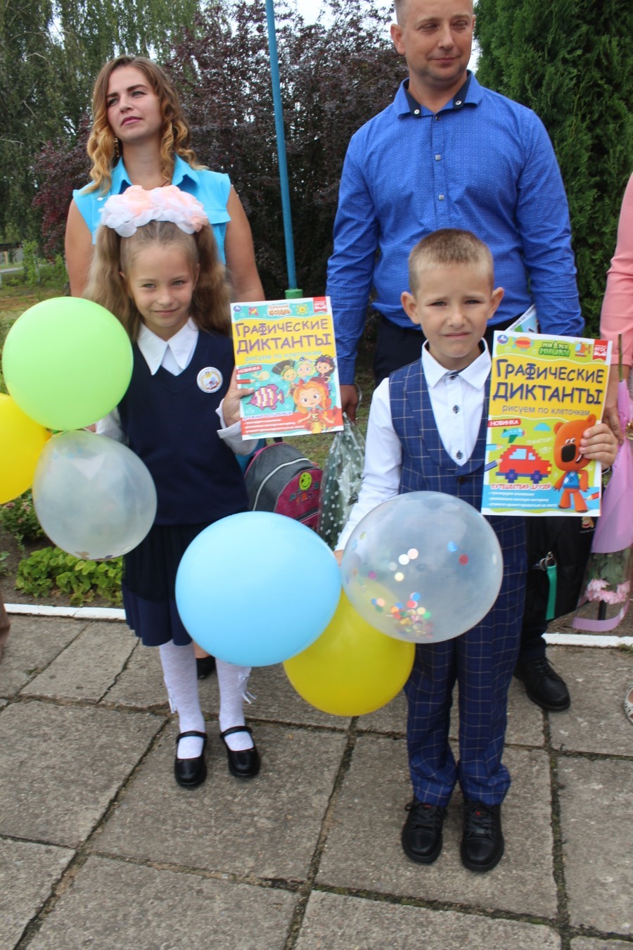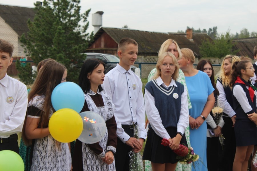 И вот наступает кульминационный момент торжества: раздается первый в этом учебном году школьный звонок. Его дали Роман Нестерович и Ангелина Цедрик. Учебный год стартовал, вперед, за знаниями!