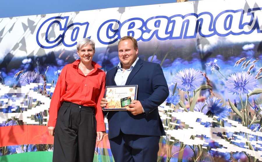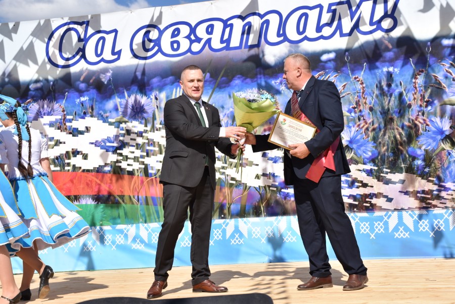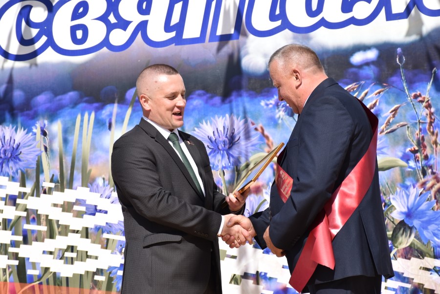 Кстати, Юрию Борисовичу, как руководителю хозяйства, принимавшего праздник, традиционно вручил председатель райисполкома. Он же озвучил и адрес дожинок 2024 года. Этим хозяйством становится филиал СП «Орешковичи» ОАО «Минский завод колесных тягачей». Так что до встречи в новом году с новыми победами, высокими намолотами и славными именами победителей районной жатвы!
